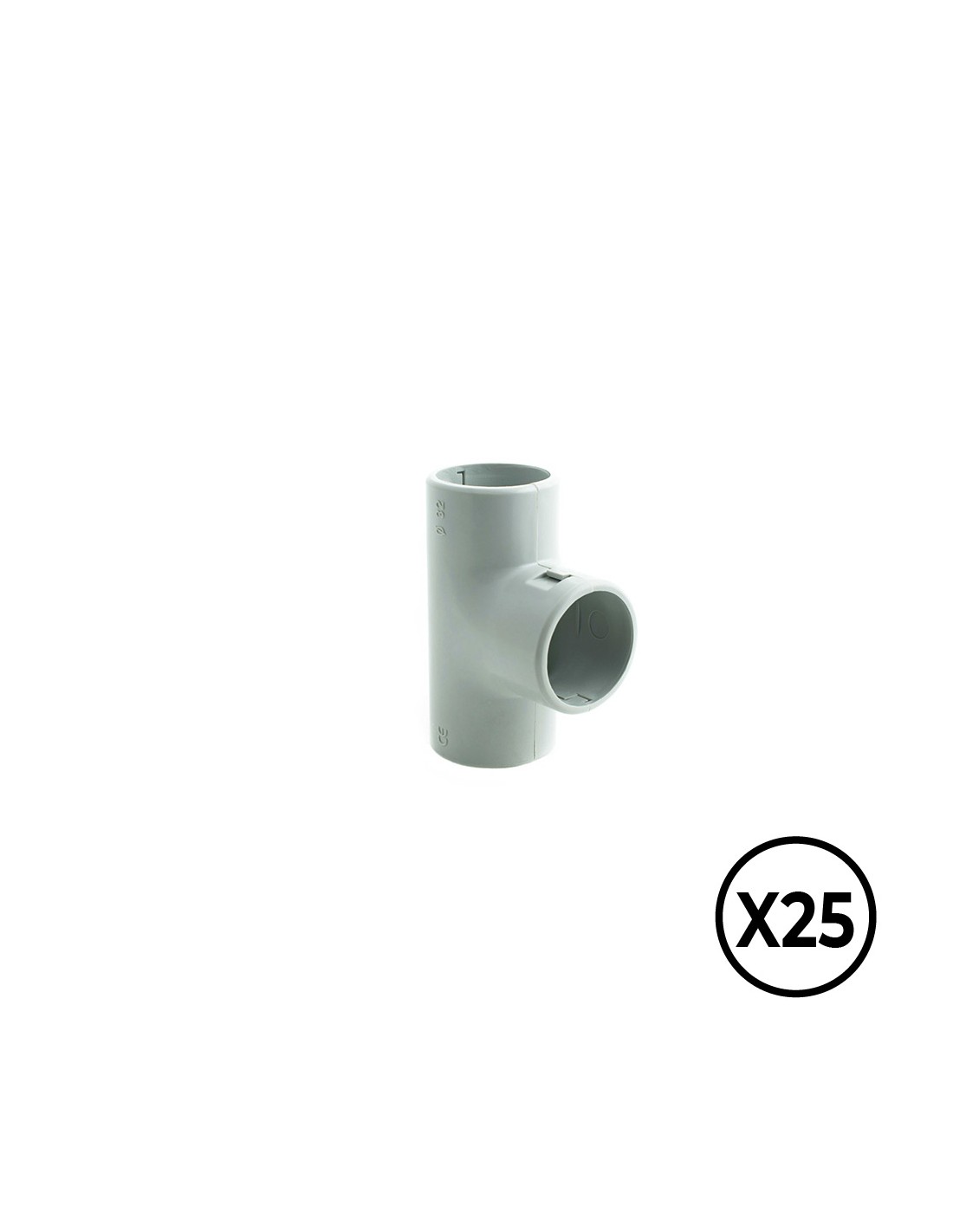 Manguito en t inspeccionable de pvc para unión de tubos rígidos de pvc ø 25 mm, gris, 25 unidades