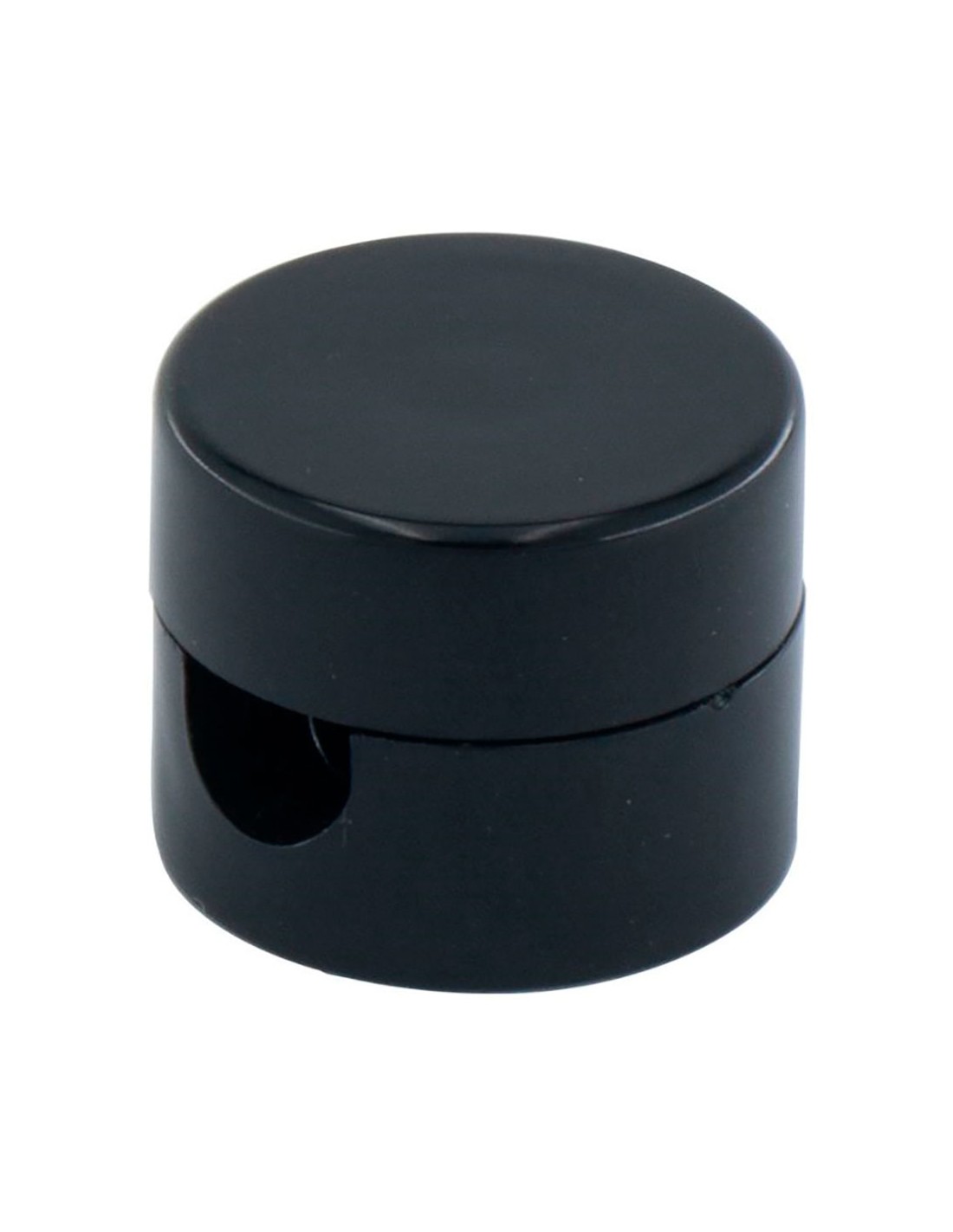 Sujetacables de plástico, redondo, negro compuesto de dos piezas de plástico, una se sujeta al techo o a la pared y la otra rosca sobre la primera para sujetar el cable, presentación en caja de 5 uds, ø19 x 18 mm
