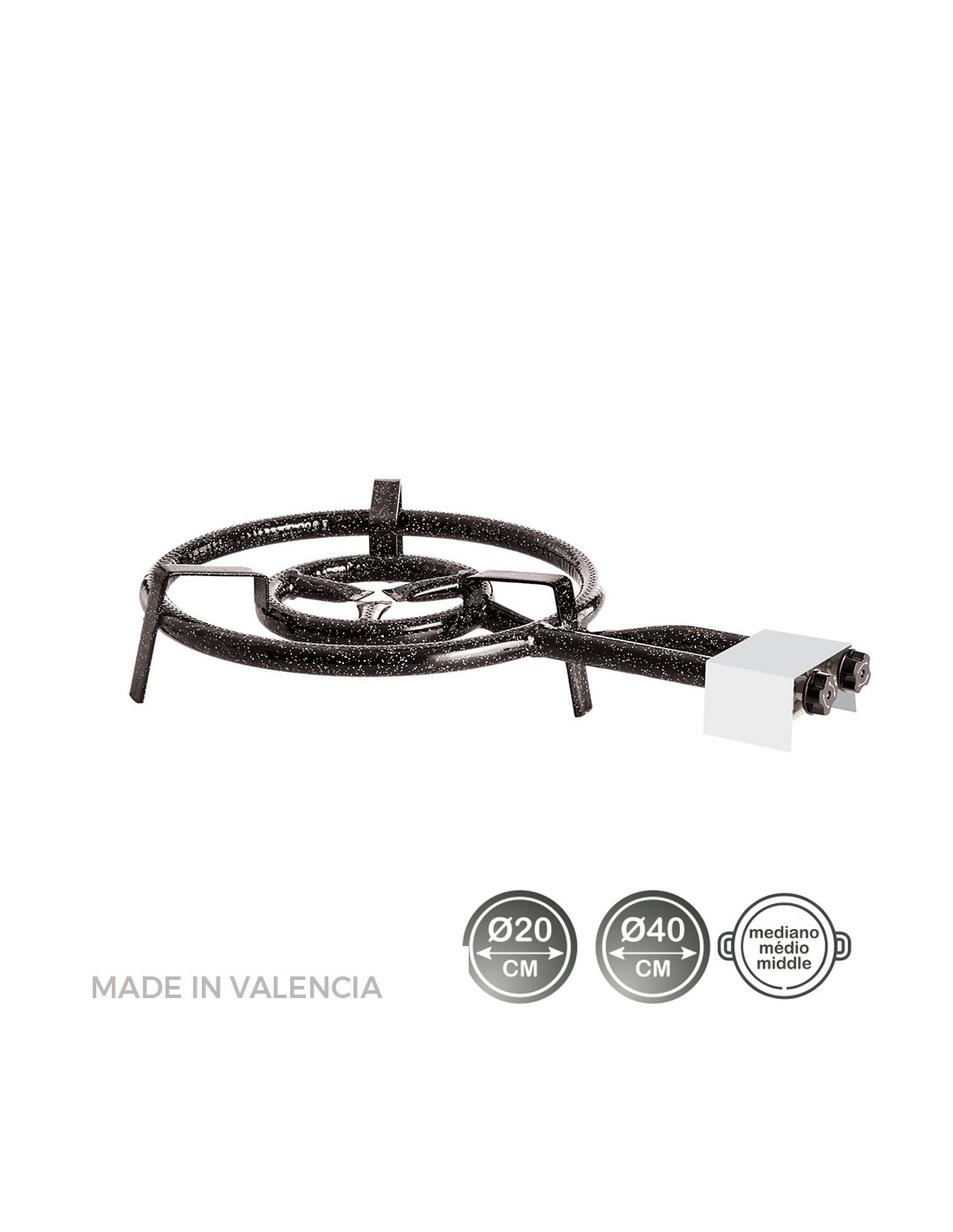 Quemador de gas butano/propano ø40cm 2 fuegos (para paellas). fabricado en acero laminado recubierto de esmalte. color negro.homologado. vaello