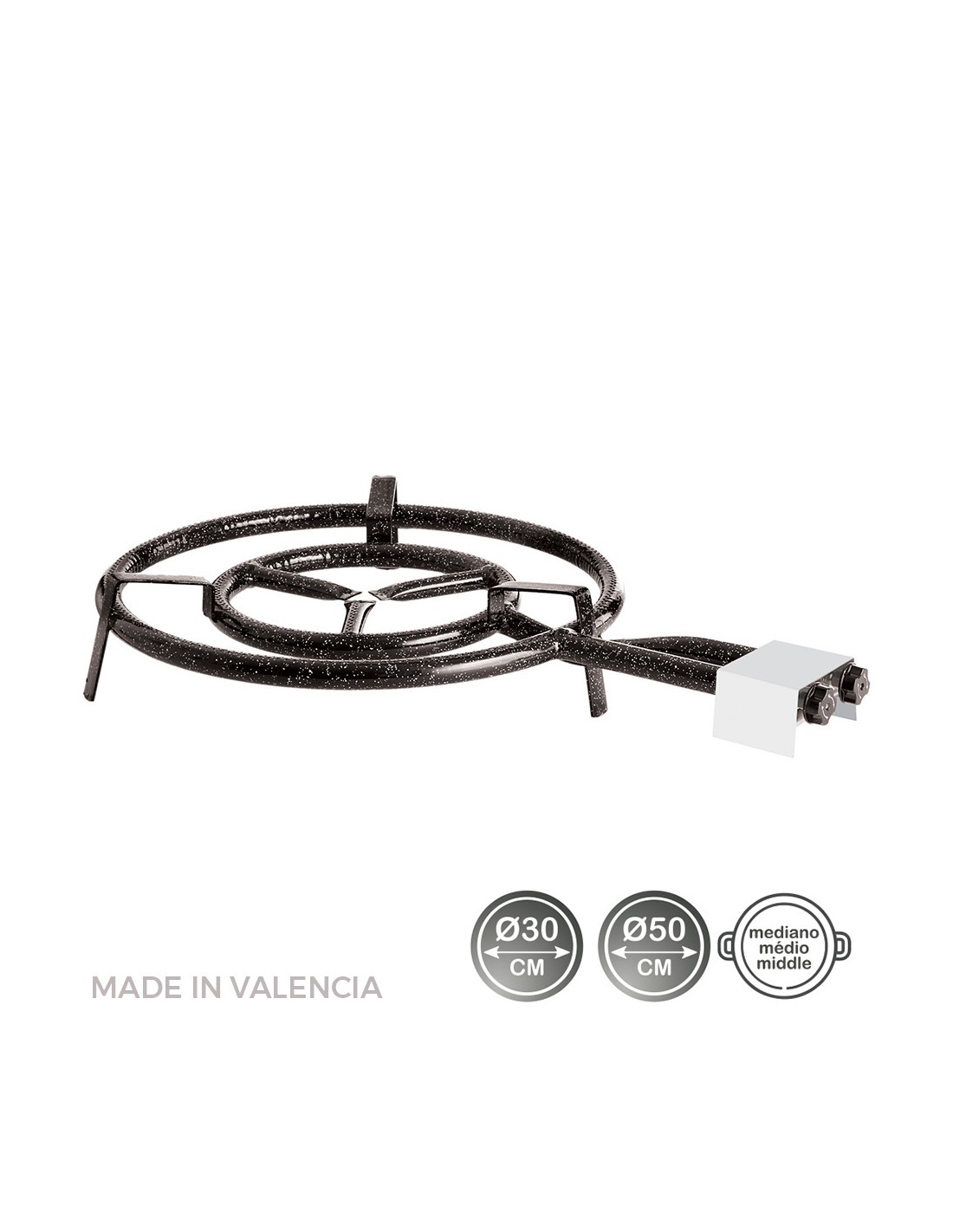 Quemador de gas butano/propano ø50cm 2 fuegos (para paellas). fabricado en acero laminado recubierto de esmalte. color negro. homologado. vaello