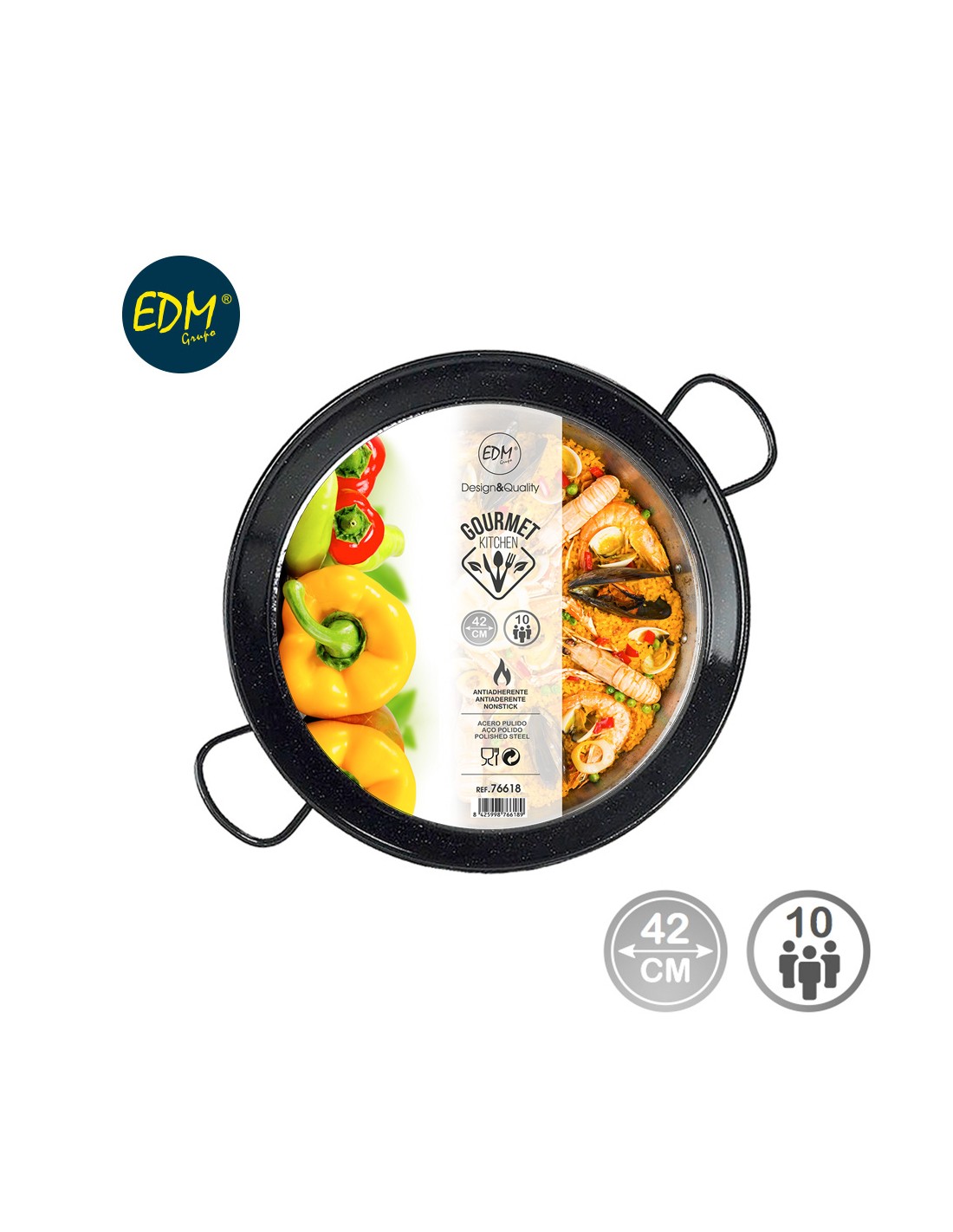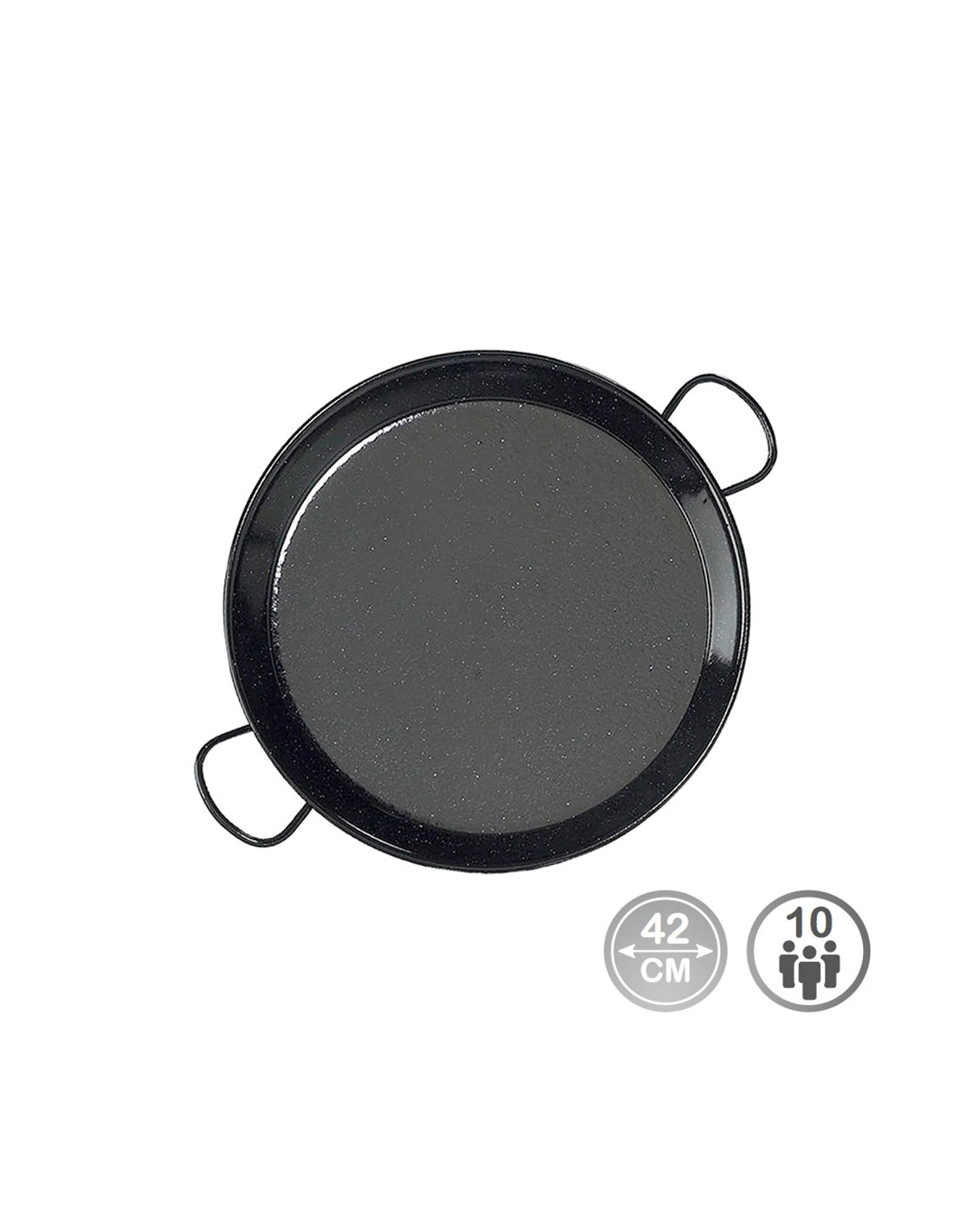 Paellera tradicional de acero esmaltado ø42cm (10 personas) apta para cocinas de gas. fabricacion nacional. atención: requiere mantenimiento. debe ser almacenado con una cubierta de aceite. vaello