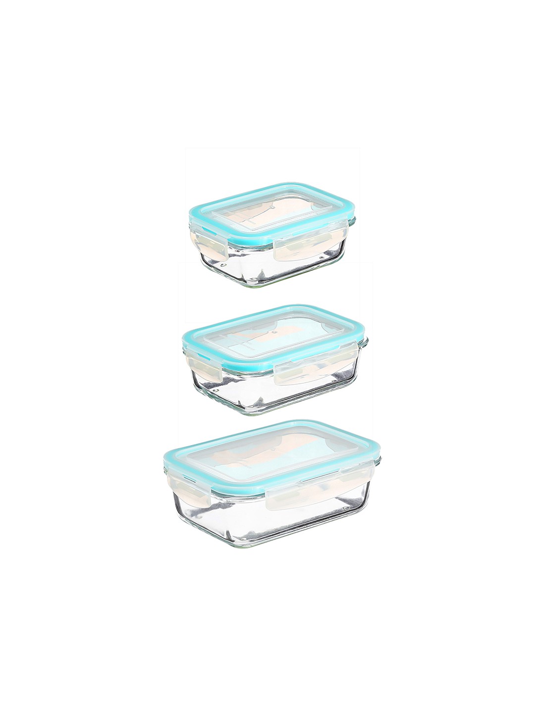 Conjunto 3 fiambreras de cristal tamaños varios 330 ml - 13 x 10 x 5 cm, 800 ml - 18,5 x 12,5 x 6 cm, 1.730 ml - 23 x 16,5 x 8,5 cm