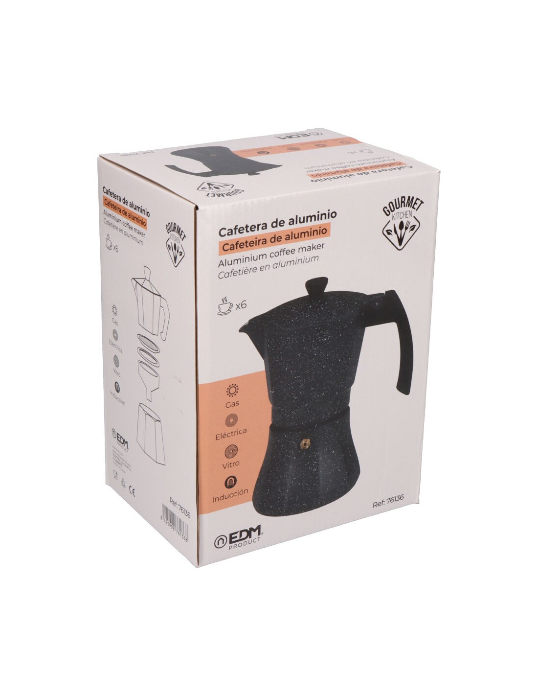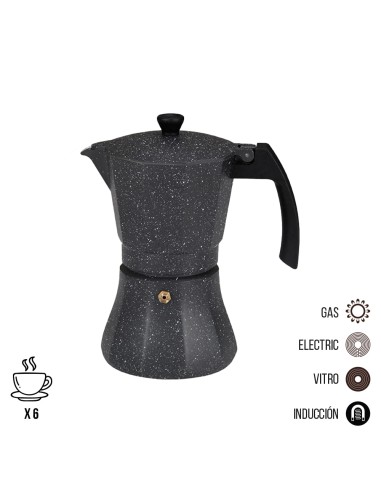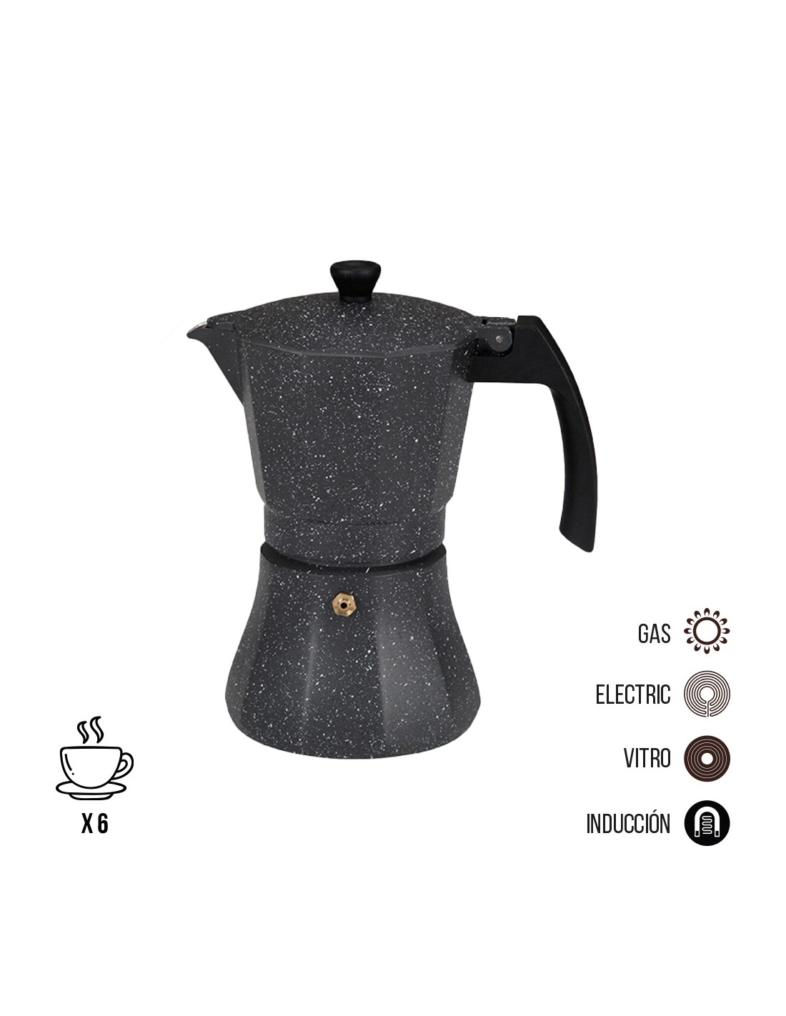 Cafetera de aluminio de 6 tazas. apta para gas, vitroceramica, placa electrica e induccion. fabricada segun normativa ue de productos en contacto directo con los alimentos