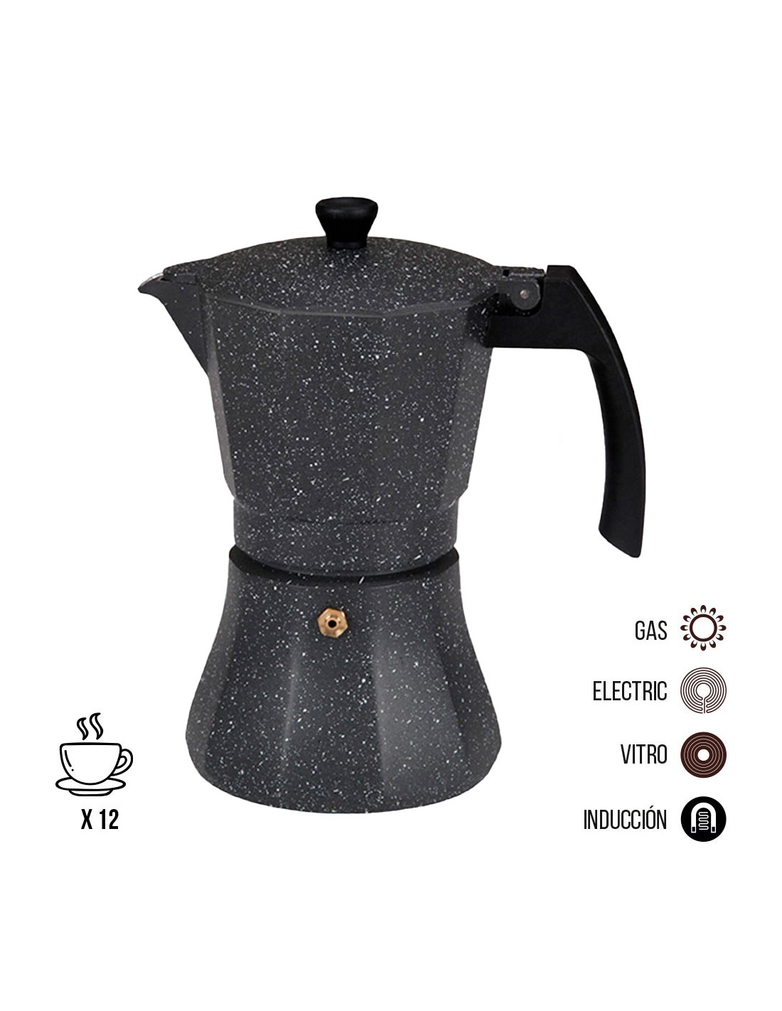 Cafetera de aluminio de 12 tazas. apta para gas, vitroceramica, placa electrica e induccion. fabricada segun normativa ue de productos en contacto directo con los alimentos