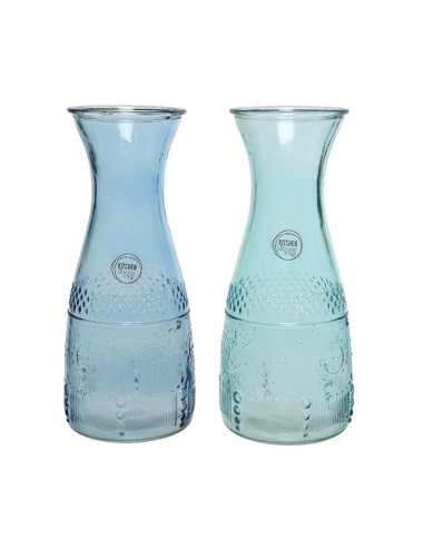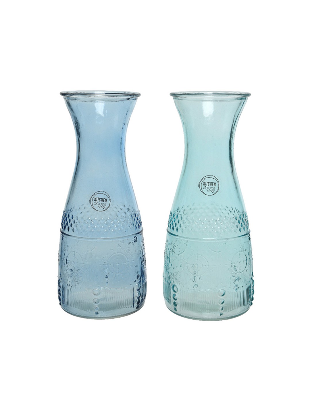 Botella de cristal con relieve. colores surtidos azul claro y azul oscuro. ø10 x 25 cm 1,10 l. no apto para lavavajillas