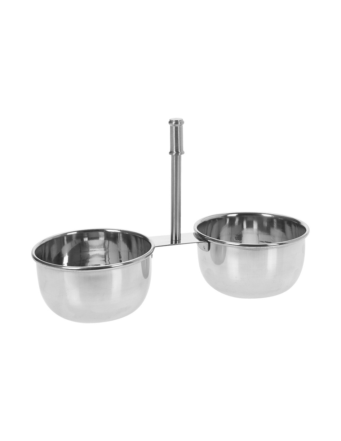 Recipiente doble para salsas fabricado en acero inoxidable 21 x 9 x 14,5 cm