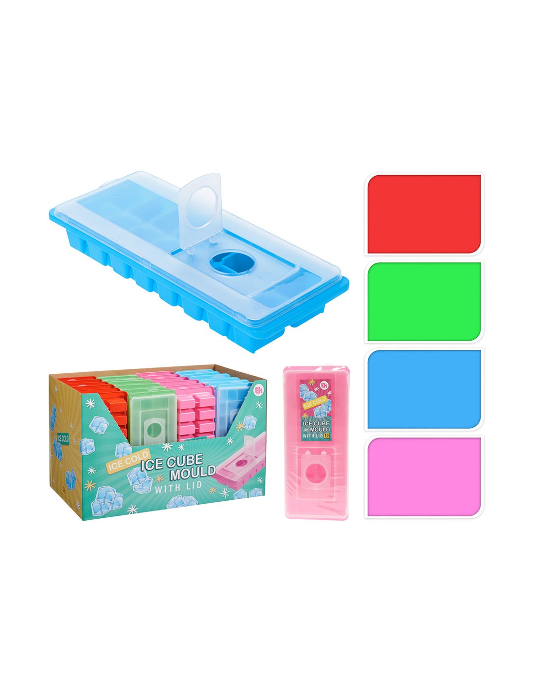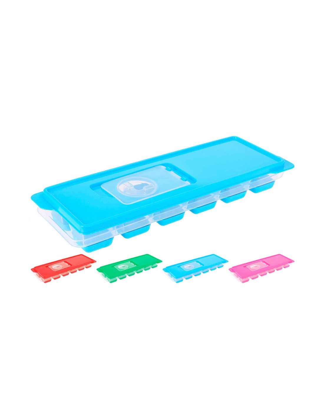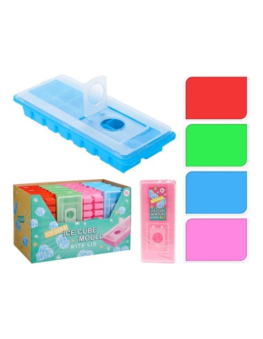 Cubitera con tapa en polipropileno colores surtidos. de fácil uso gracias a la tapa superior para poder llenar la cubitera sin riesgo a derrames, 16 cubitos