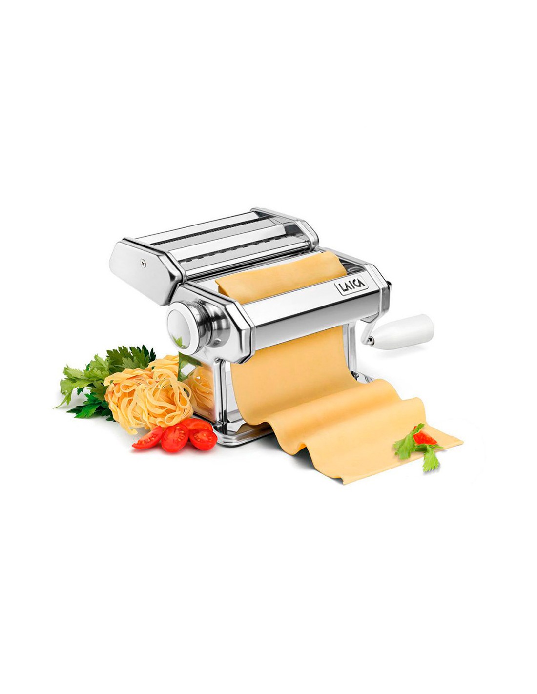 Maquina para hacer pasta pm2000 laica. ideal para amantes de la pasta casera fresca hecha en casa. incluye: 1 maquina para hacer pasta, 1 rodillo de corte doble intercambiable, 1 manivela, 1 abrazadera con tornillo, 2 manuales de instrucciones. con el rodillo incluido se pueden hacer placas para lasaña, fettuccine 6mm y tagliatelle 2mm. apertura minima 0.3mm y apertura máxima 3mm. ancho maximo 150mm. pomo regulador a 7 posiciones. cuerpo de la maquina en acero y rodillos en aluminio. dimensiones: 20.2x19.6x15.2cm. laica
