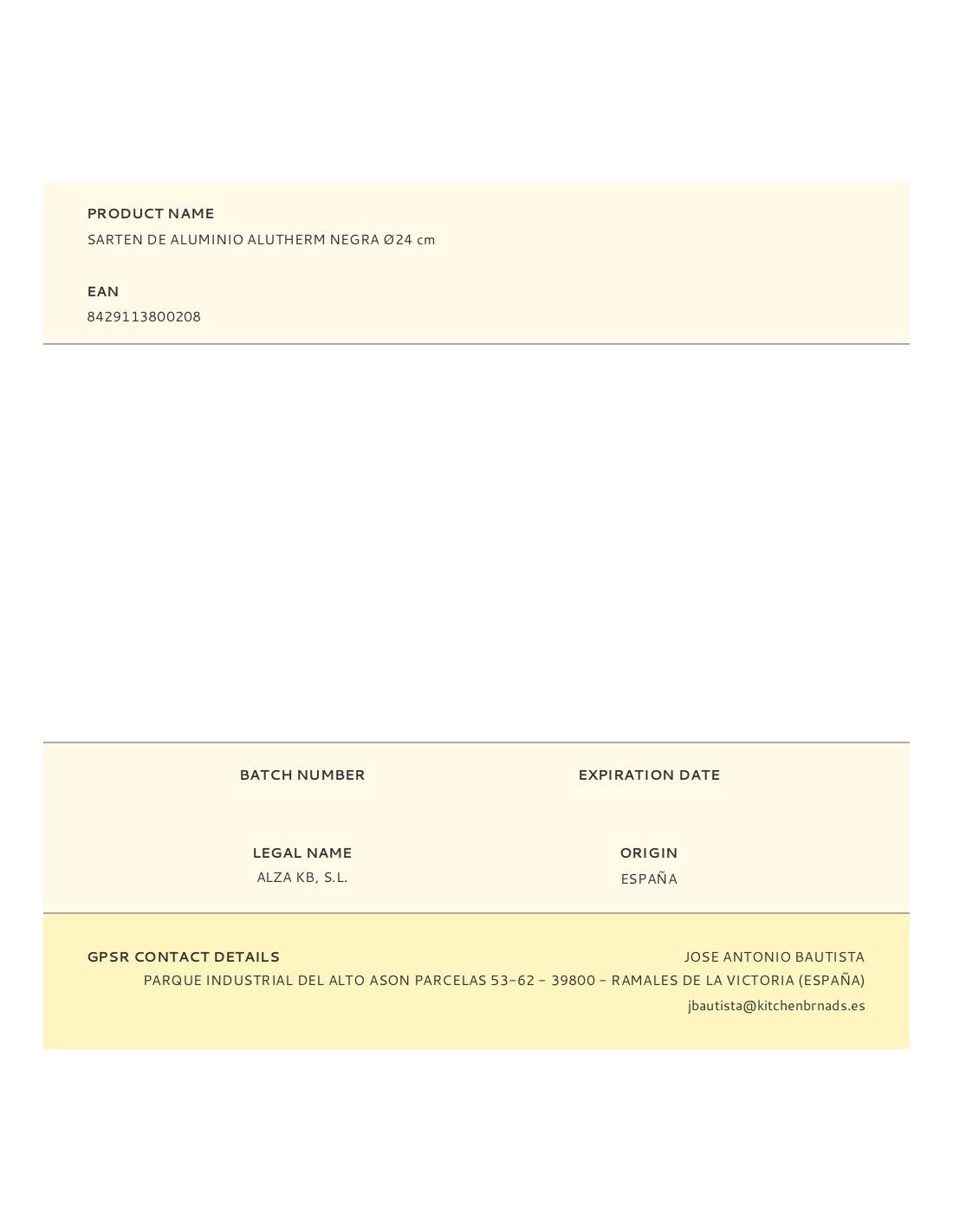 Sartén alutherm ø24cm negra aluminio 3004. aluminio fundido de alto espesor. espesor de cuerpo 2mm. antiadherente de doble capa xylan plus reforzado efecto granito. fondo termodifusor impaksteel de máxima resistencia que optimiza la conductibilidad térmica. mangos ergonómicos de baquelita termoaislante. libre de cadmio y pfoa. 0,0% metales pesados. apto para todo tipo de fuegos. fagor