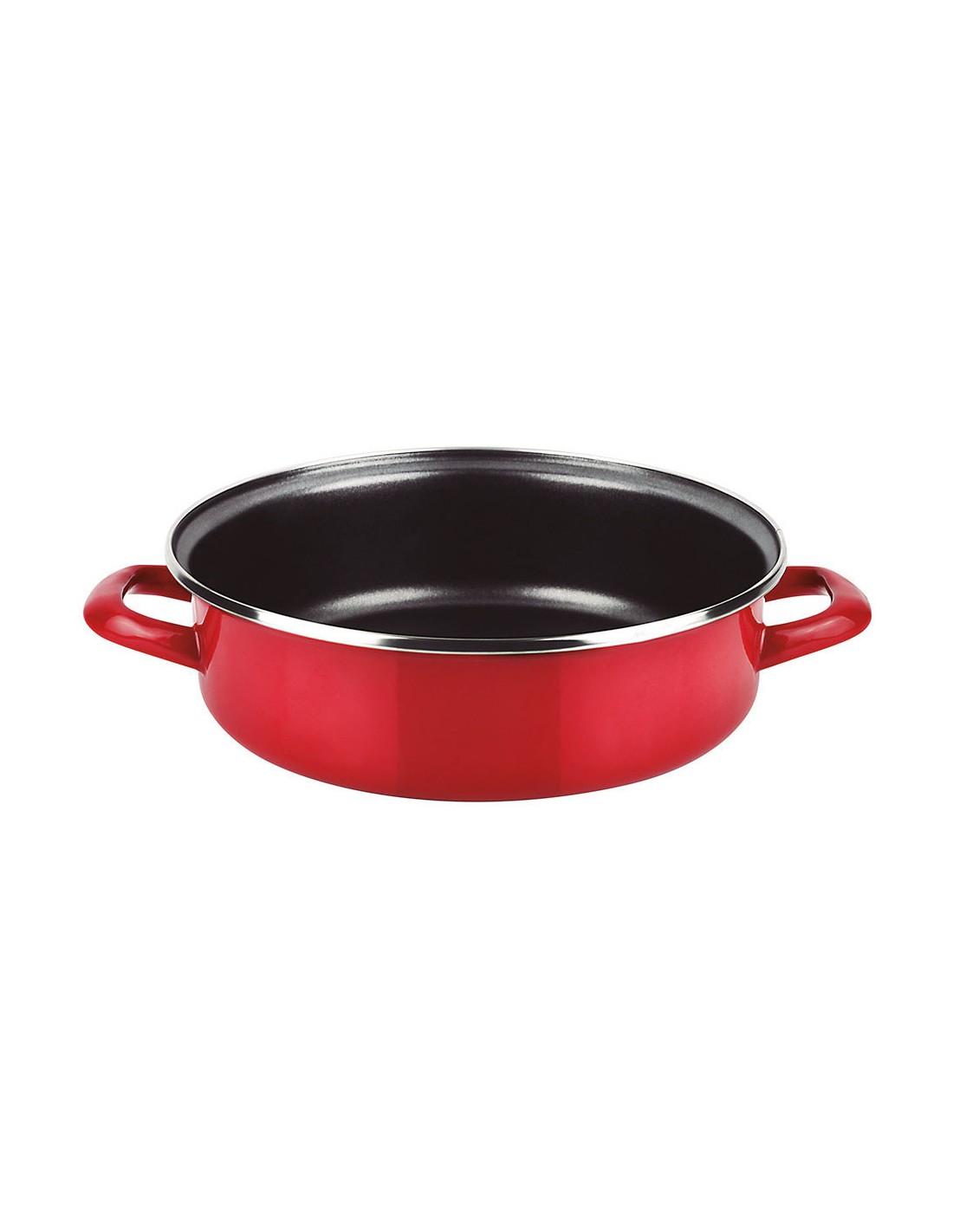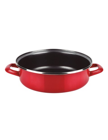 Tartera optimax ø24cm roja acero esmaltado aisi 430. acero esmaltado. alto espesor de acero con 5 capas de recubrimiento. antiadherente de doble capa xylan plus. cerquillo de acero inoxidable. mangos ergonomicos de baquelita termoaislante. libre de cadmio y pfoa. 0,0% metales pesados. apto para todo tipo de fuegos. apto para horno. fagor