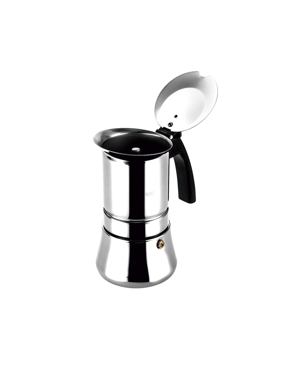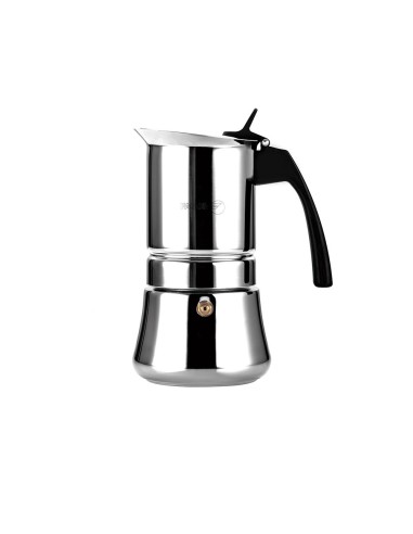 Cafetera etnica 4 tazas acero inoxidable 18/10. deposito de aleación aisi 430 y jarra aisi 304. acabado exterior pulido espejo. junta de silicona de gran durabilidad. mangos termoaislantes fabricados en nylon muy resistente. apto para todo tipo de fuegos. facil limpieza. no apta para lavavajillas.