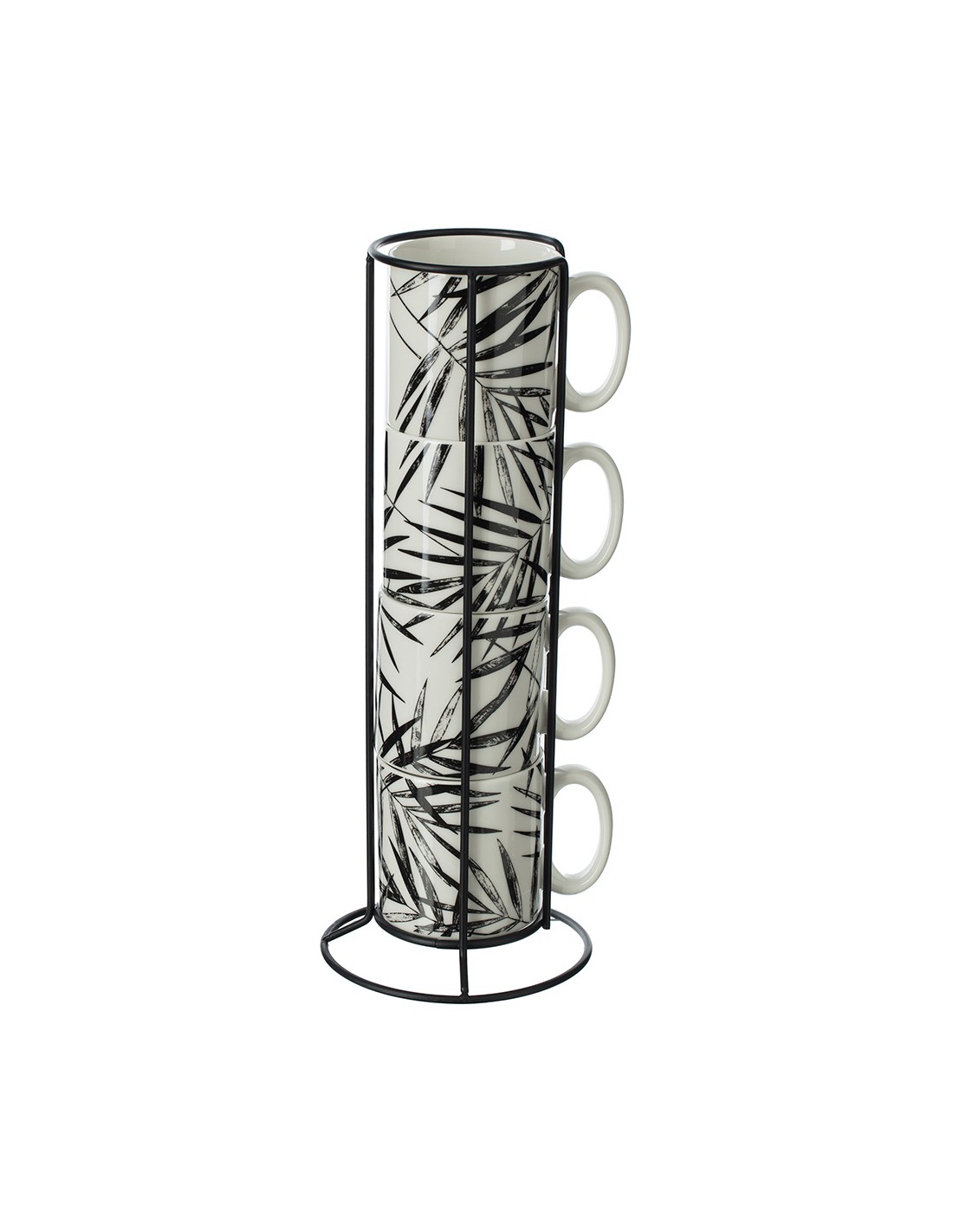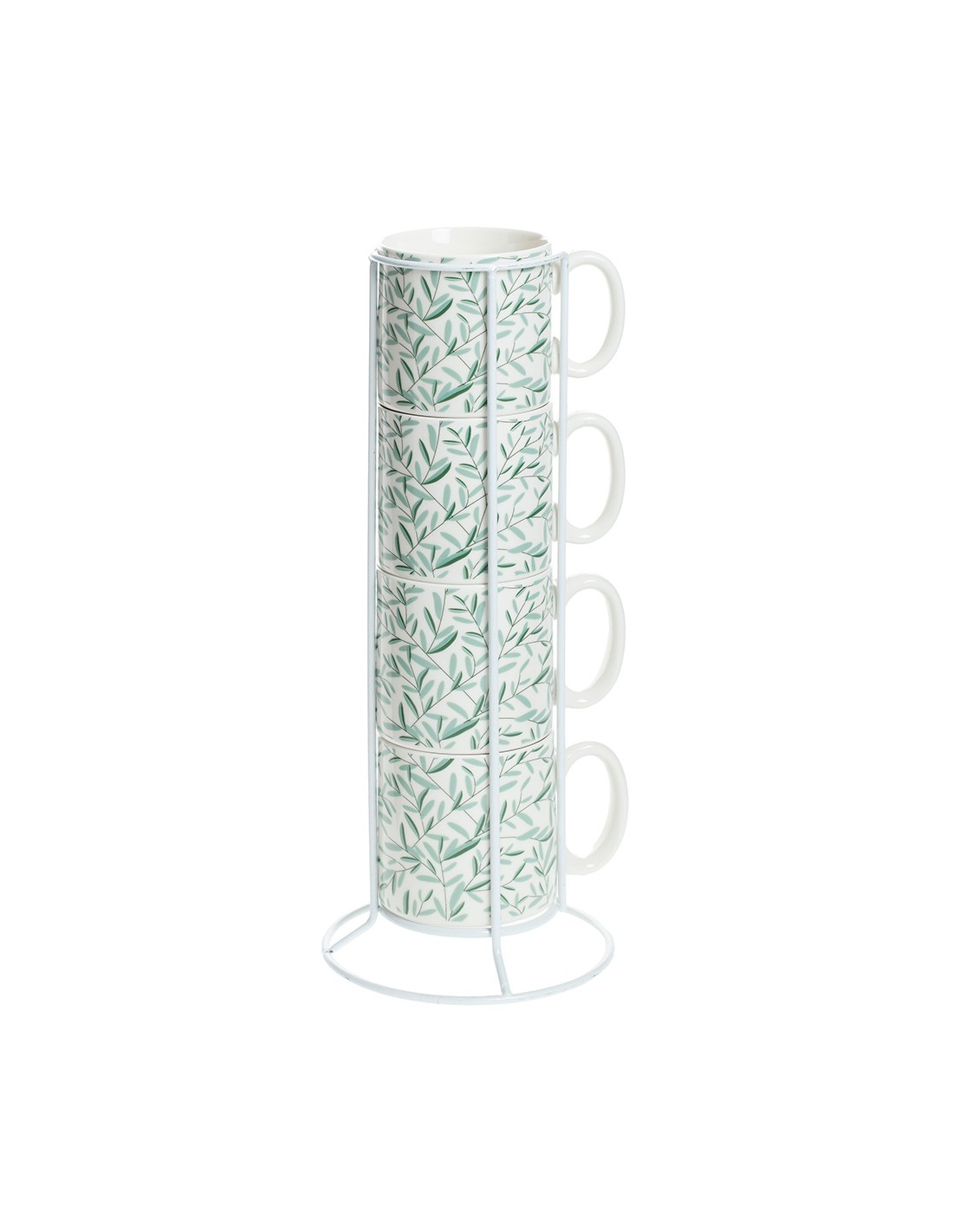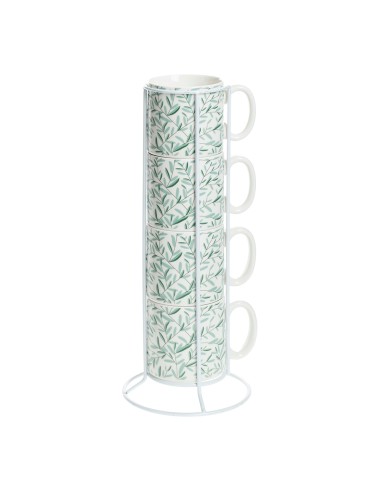 Set 4 tazas modelo "mug on rack" colores surtidos. 10.3x7x7.3cm. material: porcelana.