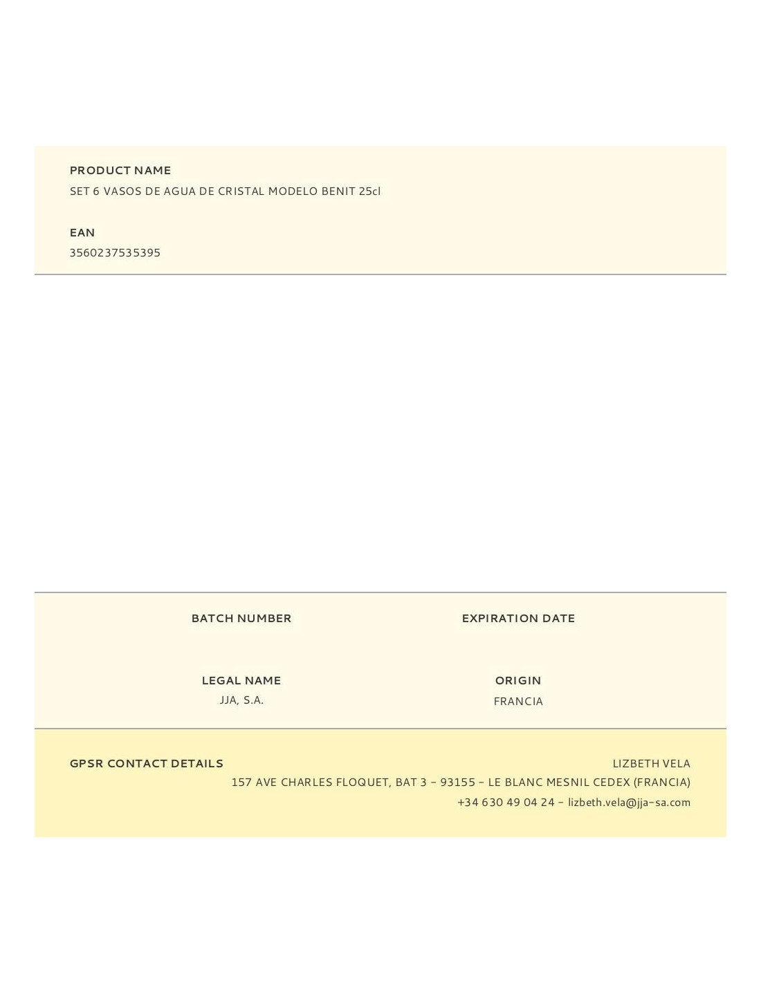 Set 6 vasos de agua de cristal modelo benit 25cl