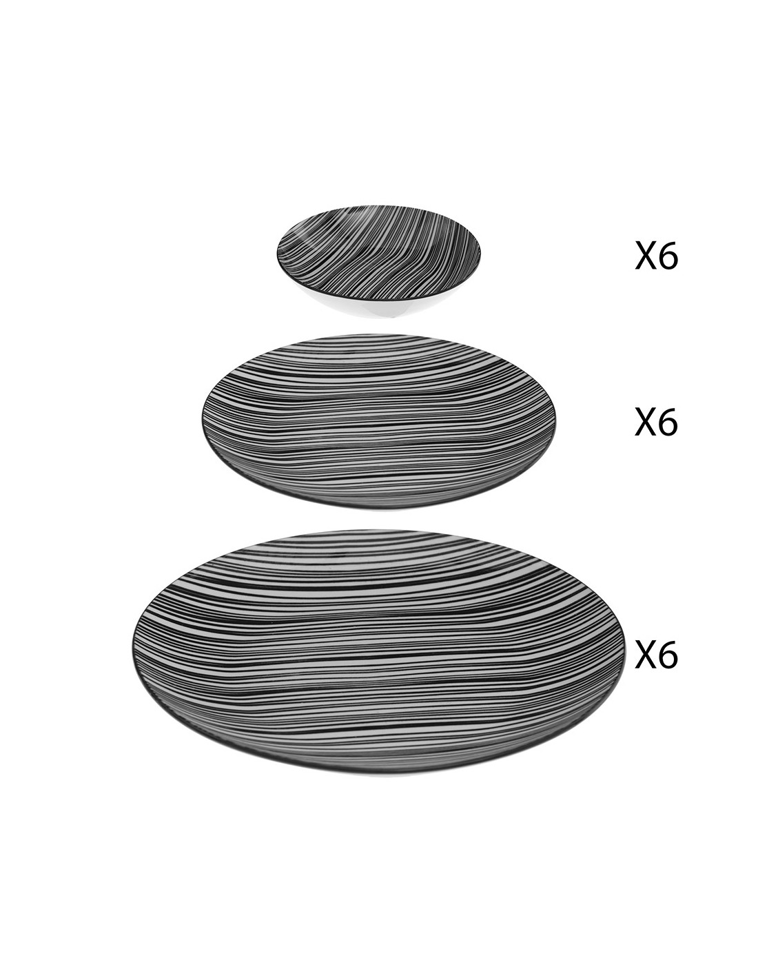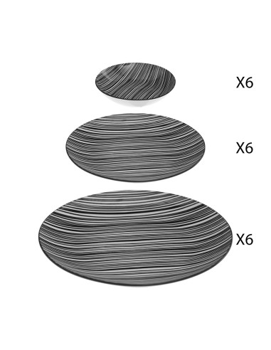 Vajilla 18 piezas modelo bohemia zèbre. set con 6 platos planos ø27cm, 6 platos hondos ø20cm y 6 platos de postre ø19cm .