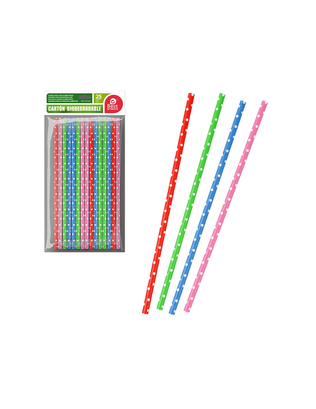 Bolsa con 25 unid. pajitas de topos colores surtidos cartón best products green