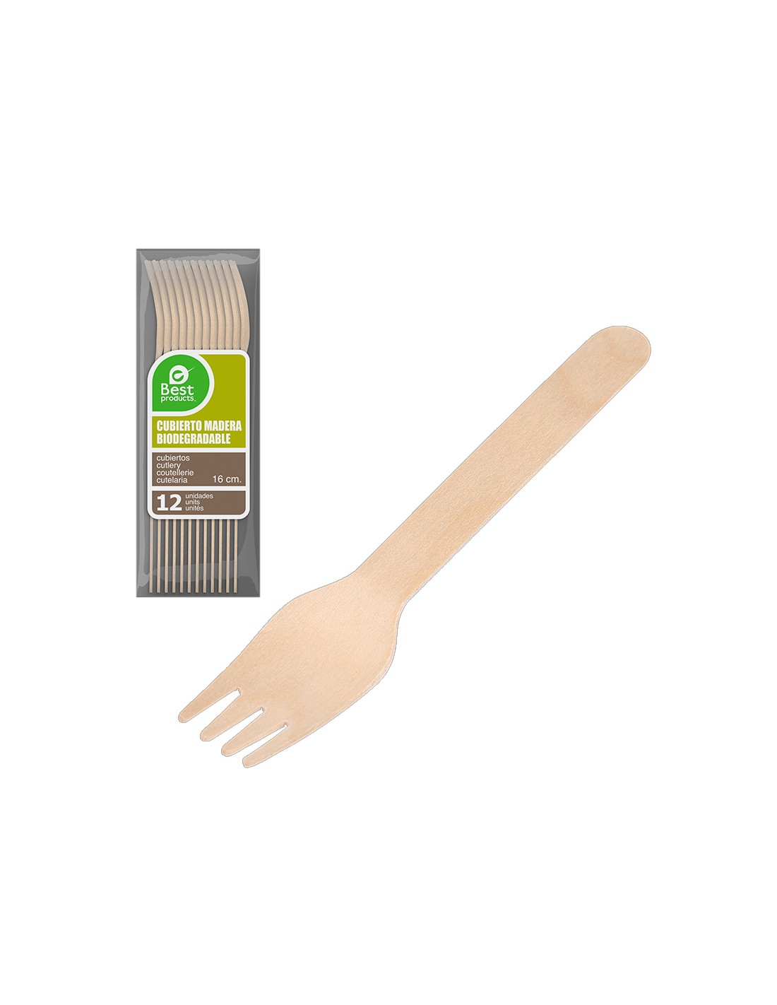 Bolsa 12 unid. tenedor de madera 16cm best products green