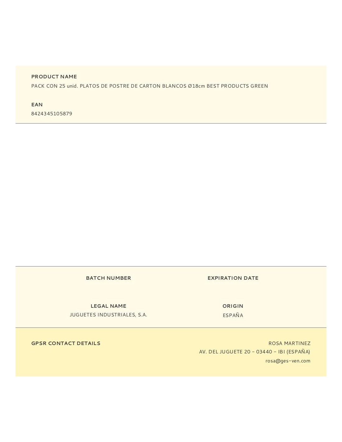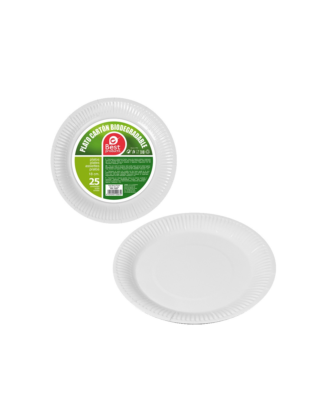 Pack con 25 unid. platos de postre de carton blancos ø18cm (diámetro) best products green