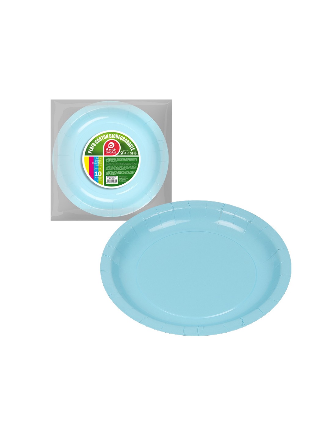 Pack con 10 unid. platos de cartón azules baby ø20cm (diámetro) best products green