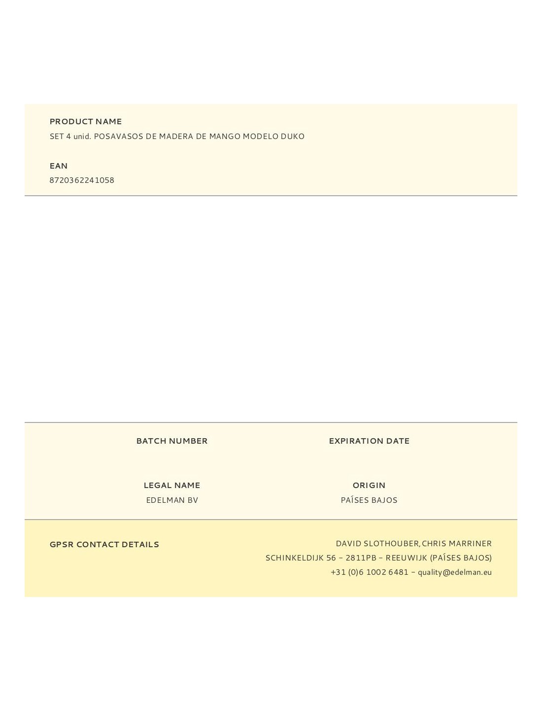 Set 4 unid. posavasos madera de mango modelo duko. 10x10x5cm (ancho/fondo/alto)