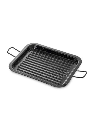 Asadora rectangular esmaltada 31x25cm. vaello. producto fabricado en acero laminado en frío y recubierto con una capa de esmalte antiácido. las asadoras de acero esmaltado se utilizan para asar todo tipo de carnes, pescados y verduras. apta para fuegos de llama. vaello