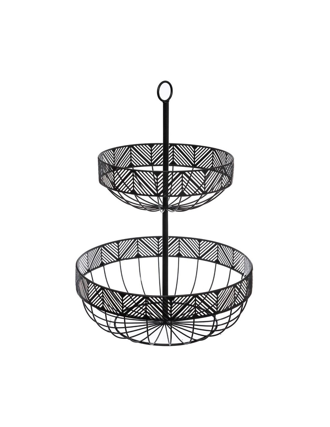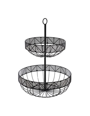 Frutero de dos pisos metalico negro. base grande ø30 cm. base pequeña ø22 cm. alto 42 cm