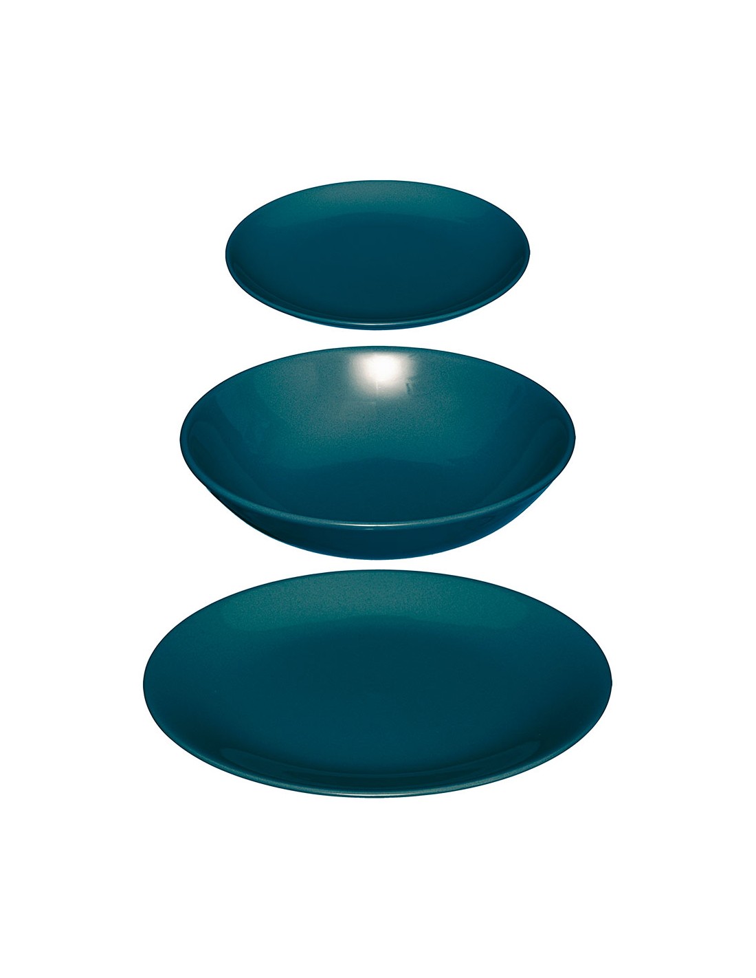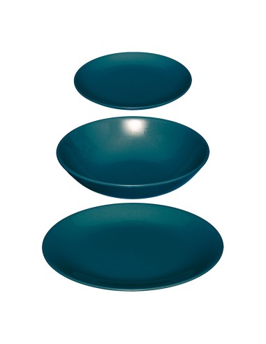 Vajilla 18 piezas color azul .medida plato plano: ø26cm. medida plato mediano: ø21cm. medida plato de postre: ø20cm