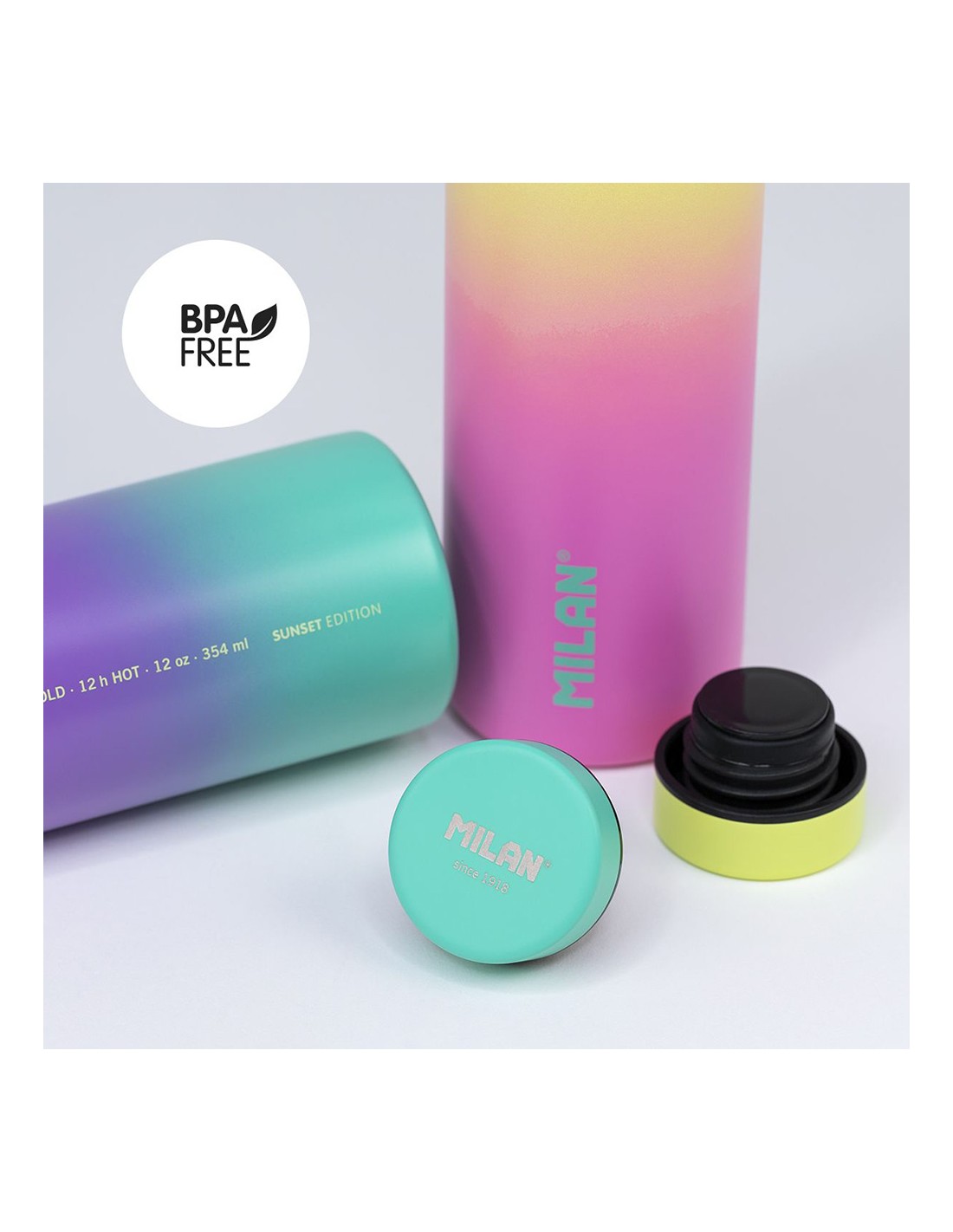 Botella isotérmica de acero inoxidable 304 sunset amarilla 591 ml. aislamiento al vacío de doble capa que elimina la condensación y permite que la parte exterior mantenga la temperatura ambiente. mantiene la temperatura del contenido interior (hasta 12 h líquidos calientes y 24 h líquidos fríos). tapón de rosca hermético. we protect: el uso de botellas reutilizables contribuye a reducir el consumo de botellas de plástico de un solo uso