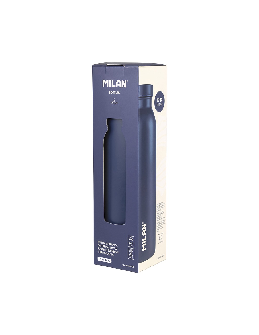 Botella isotérmica de acero inoxidable 304 edición sunset azul marino 591 ml. aislamiento al vacío de doble capa que elimina la condensación y permite que la parte exterior mantenga la temperatura ambiente. mantiene la temperatura del contenido interior (hasta 12 h líquidos calientes y 24 h líquidos fríos). tapón de rosca hermético. we protect: el uso de botellas reutilizables contribuye a reducir el consumo de botellas de plástico de un solo uso