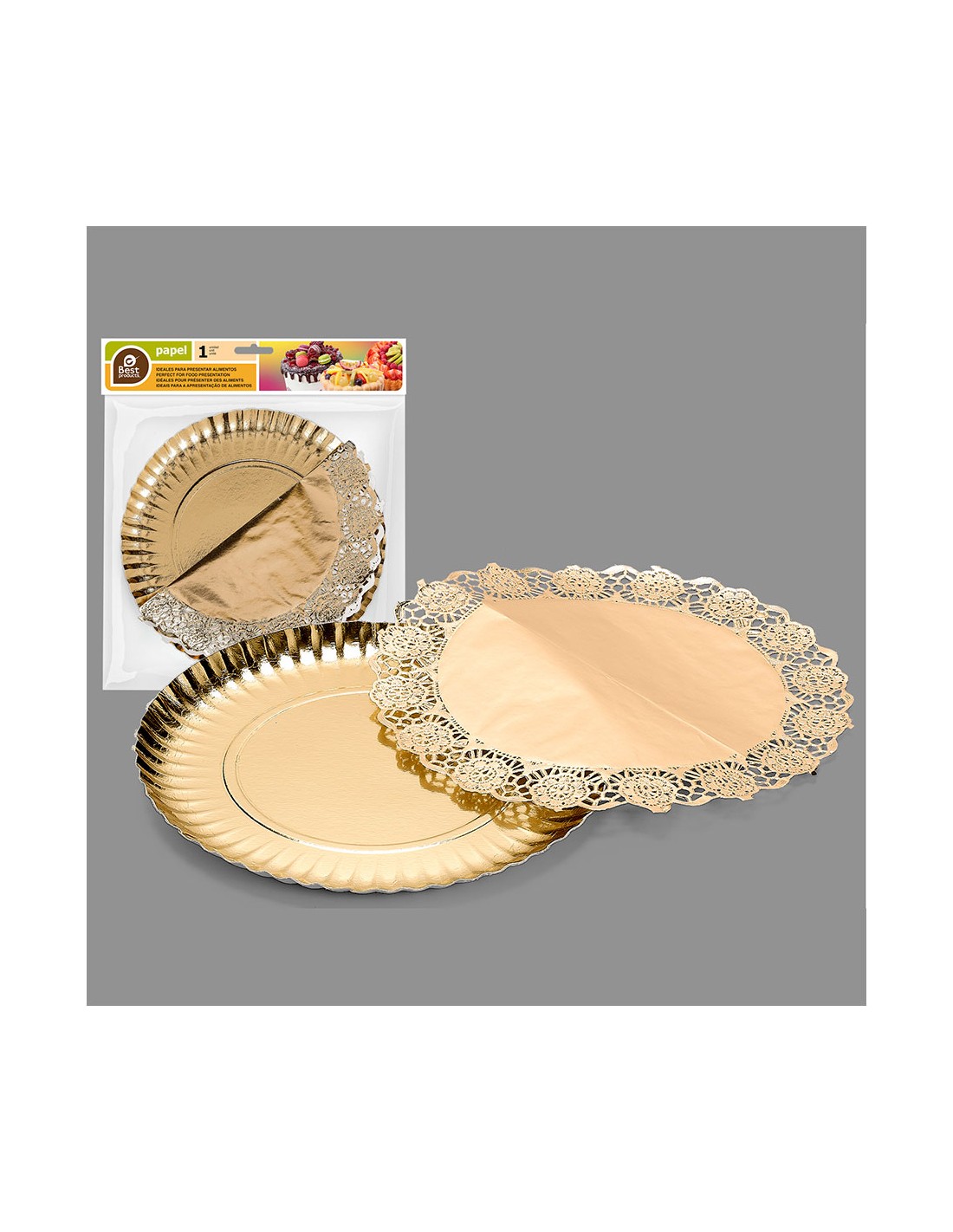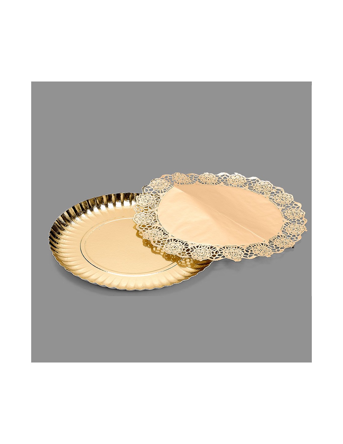 Bolsa con 1 bandeja redonda con blonda oro ø23cm (diámetro)