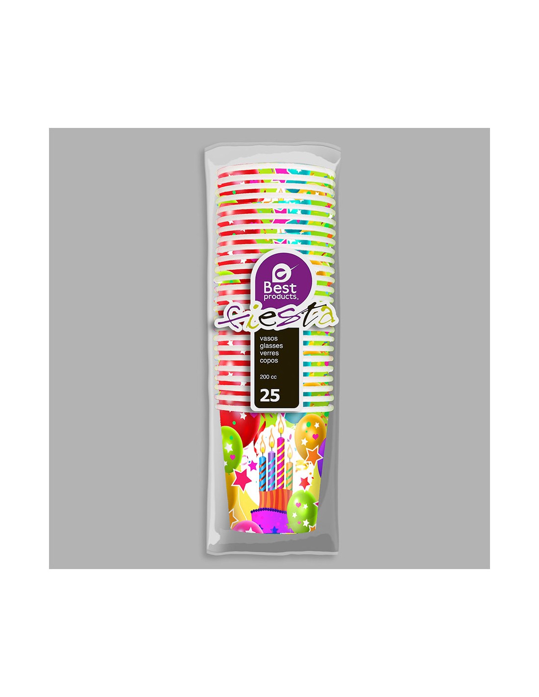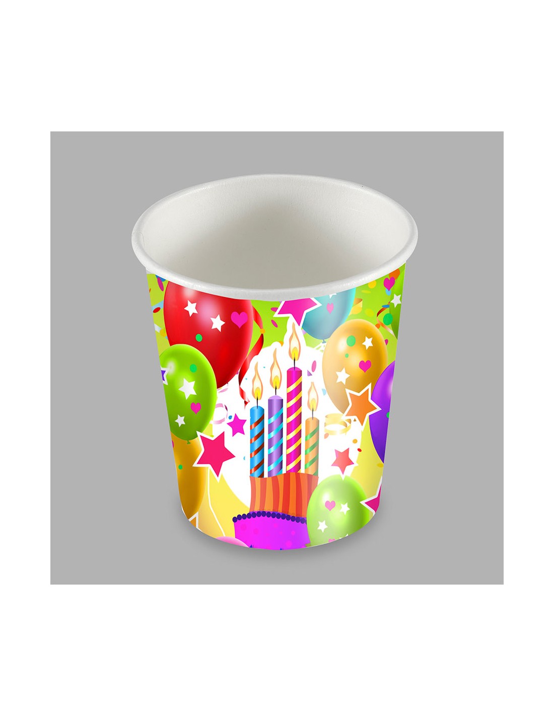 Bolsa con 25 vasos de carton diseño globos y velas 200cc