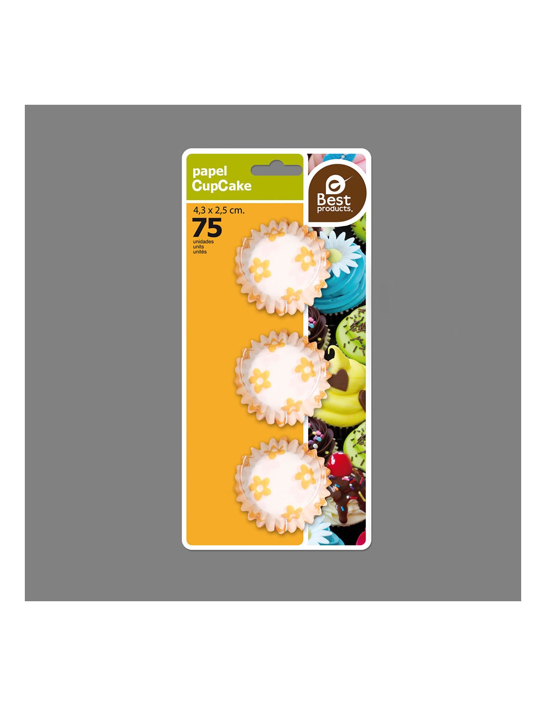 Blister con 75 moldes de papel para magdalenas ø4,3x2,5cm (diámetro/alto) colores surtidos