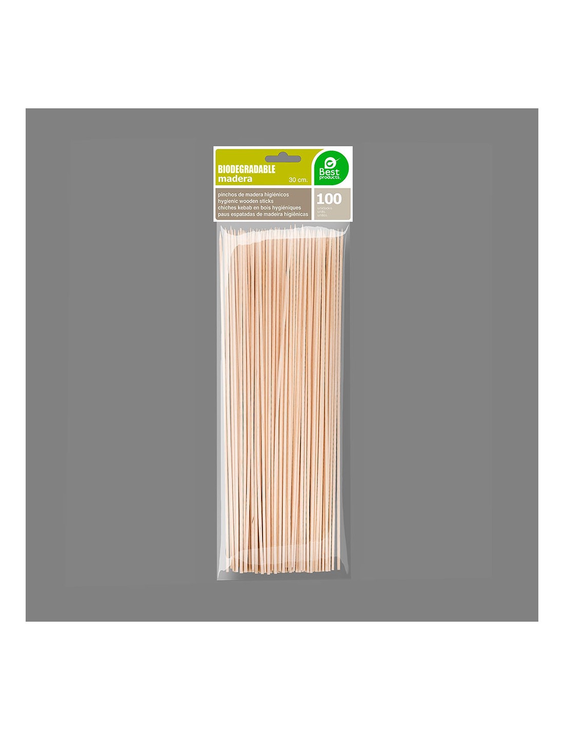 Blister 100 pinchos de madera higienicos de 300x2mm