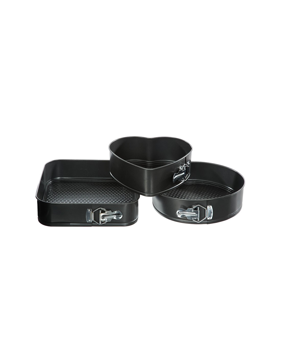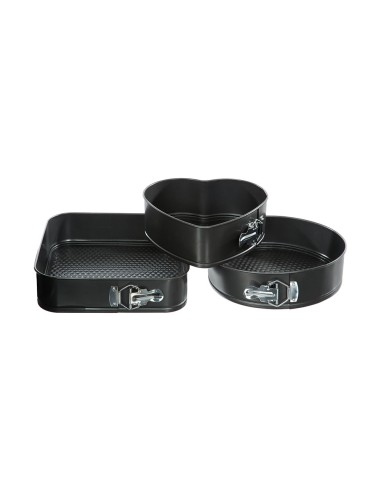 Set 3 moldes desmontables. molde cuadrado 26x26x6,7cm, molde redondo ø24x6.8cm, molde forma de corazon 22x20cm.