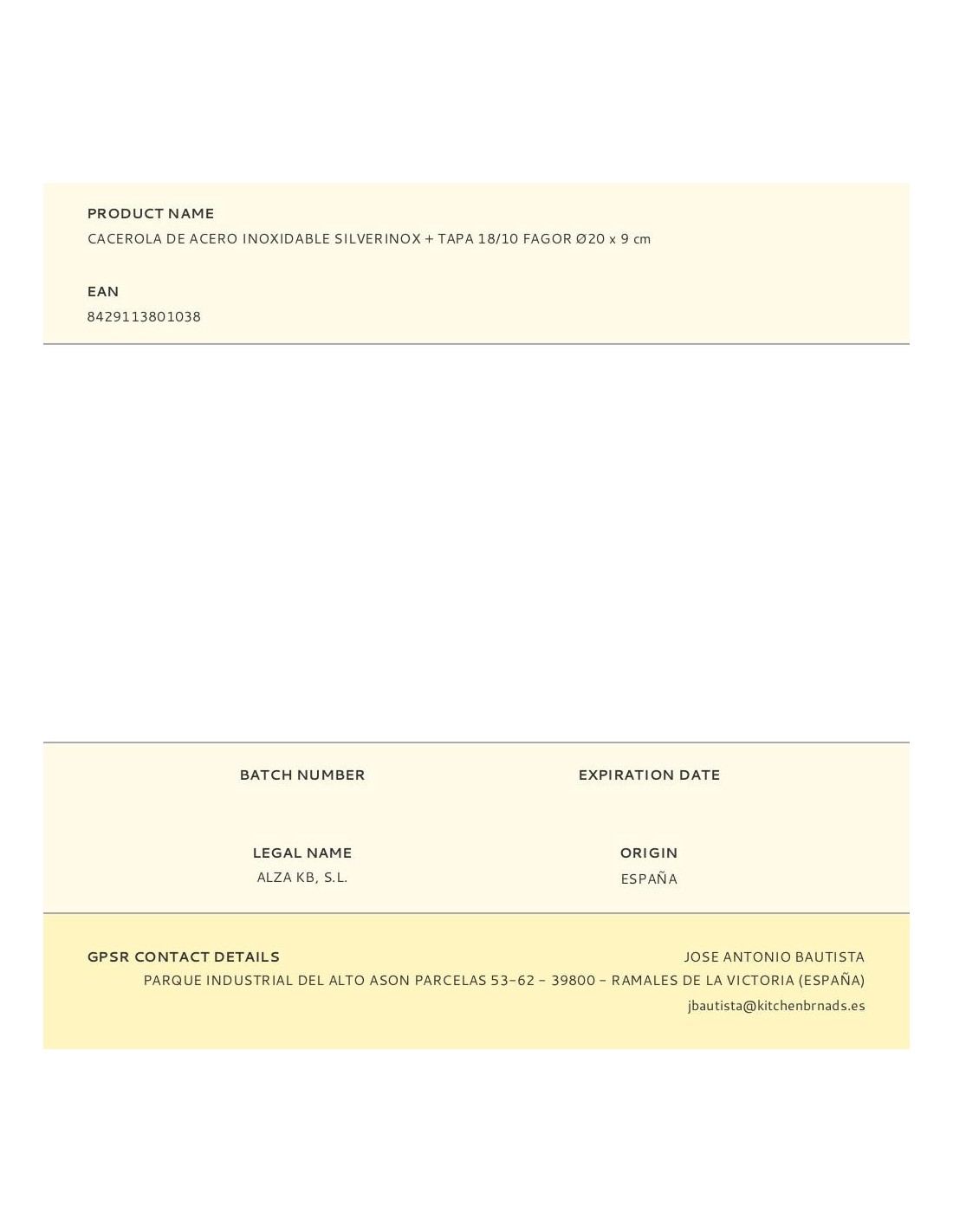 Cacerola de acero inoxidable silverinox + tapa ø20cm 18/10. fondo termodifusor de 3 capas (acero aisi 304+aluminio 3003+acero aisi 430). forma bombeada. optima distribución del calor. tapas y asas en acero inoxidable. apto para horno. apto para todo tipo de fuegos. fagor ø20x9cm (diámetro/alto)