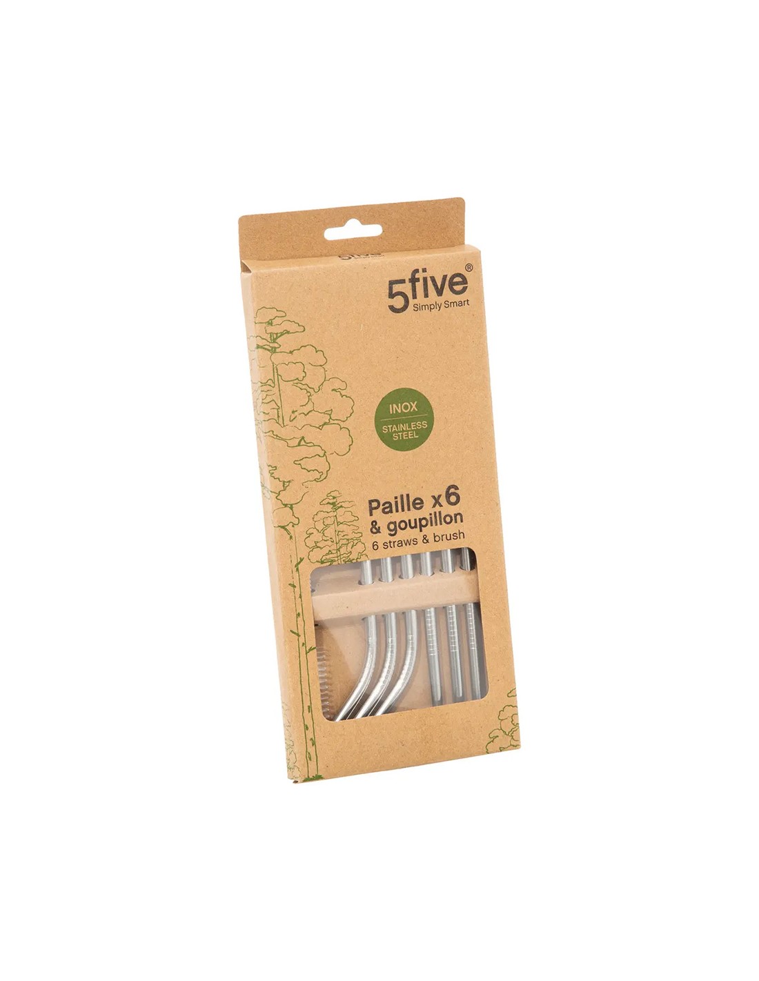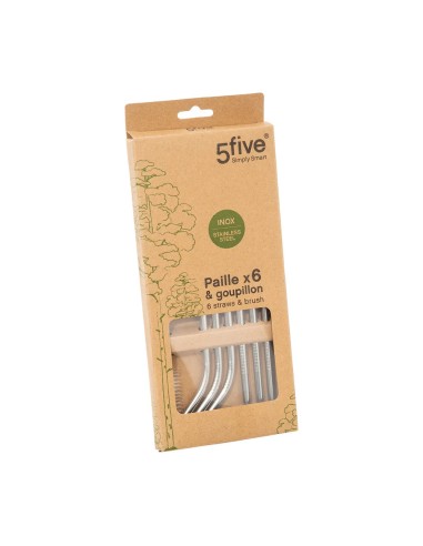 Set 6 pajitas de acero inoxidable con cepillo de limpieza, 21-21,5 cm