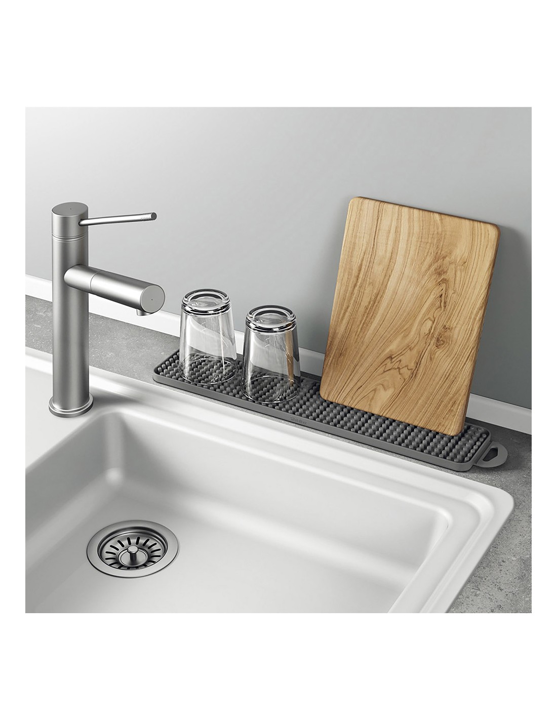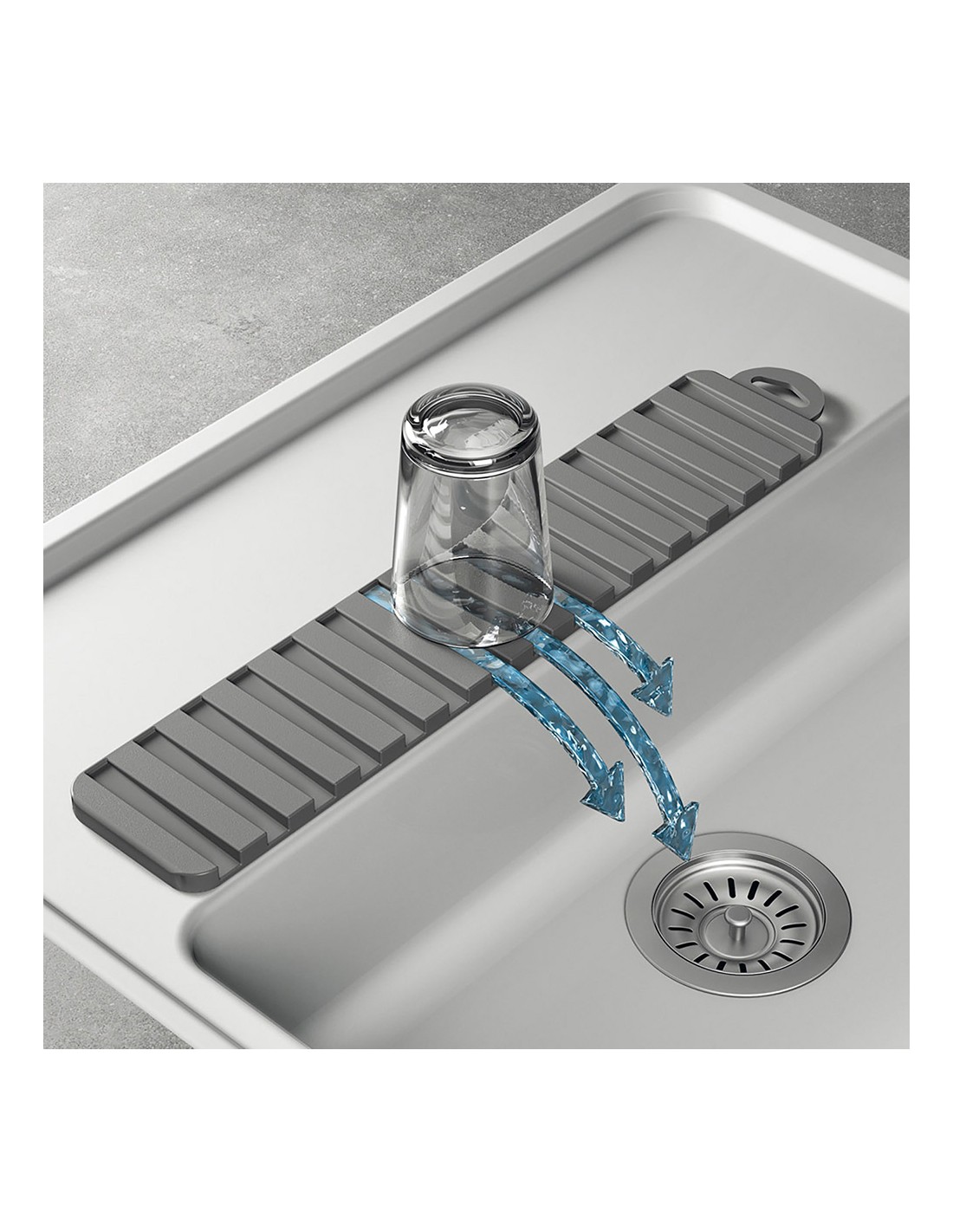 Escurreplatos reversible 'gravity slim' dimensiones: 40x8cm (ancho/fondo) metaltex. reversible: por un lado desagua el agua en el fregadero, mientras que por el otro retiene el agua para no empapar la encimera de la cocina. ideal para escurrir objetos pequeños como vasos, tablas de cortar, tapas, cubiertos, cuchillos de cocina, etc. fabricado en peva color gris. con colgador