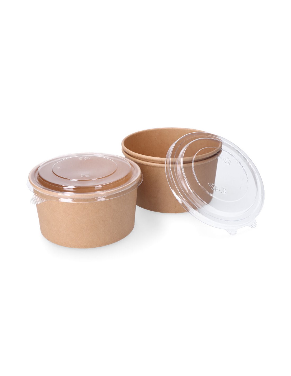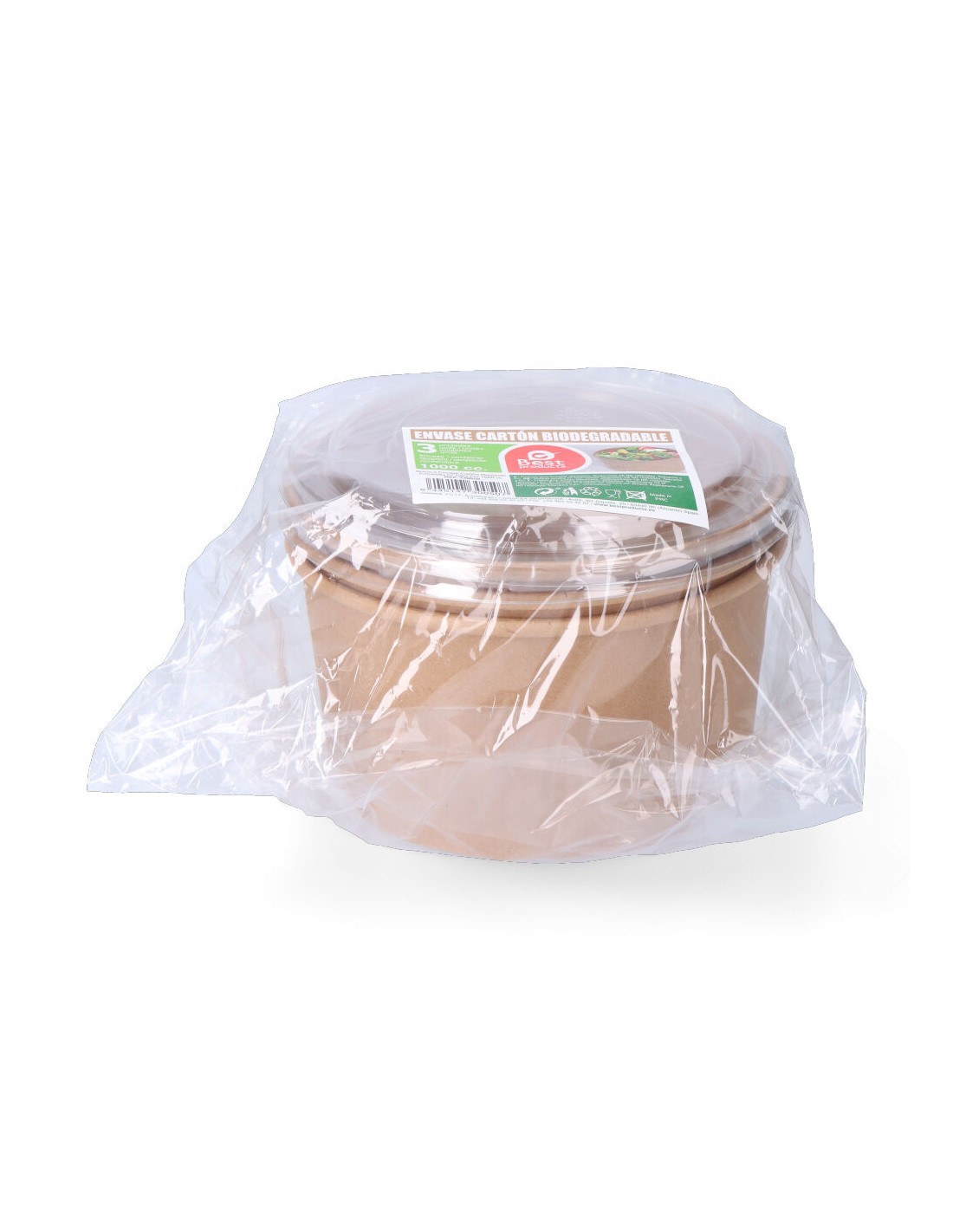 Envase de cartón biodegradable redondo para ensalada con tapa 1000cc (3 unid.)