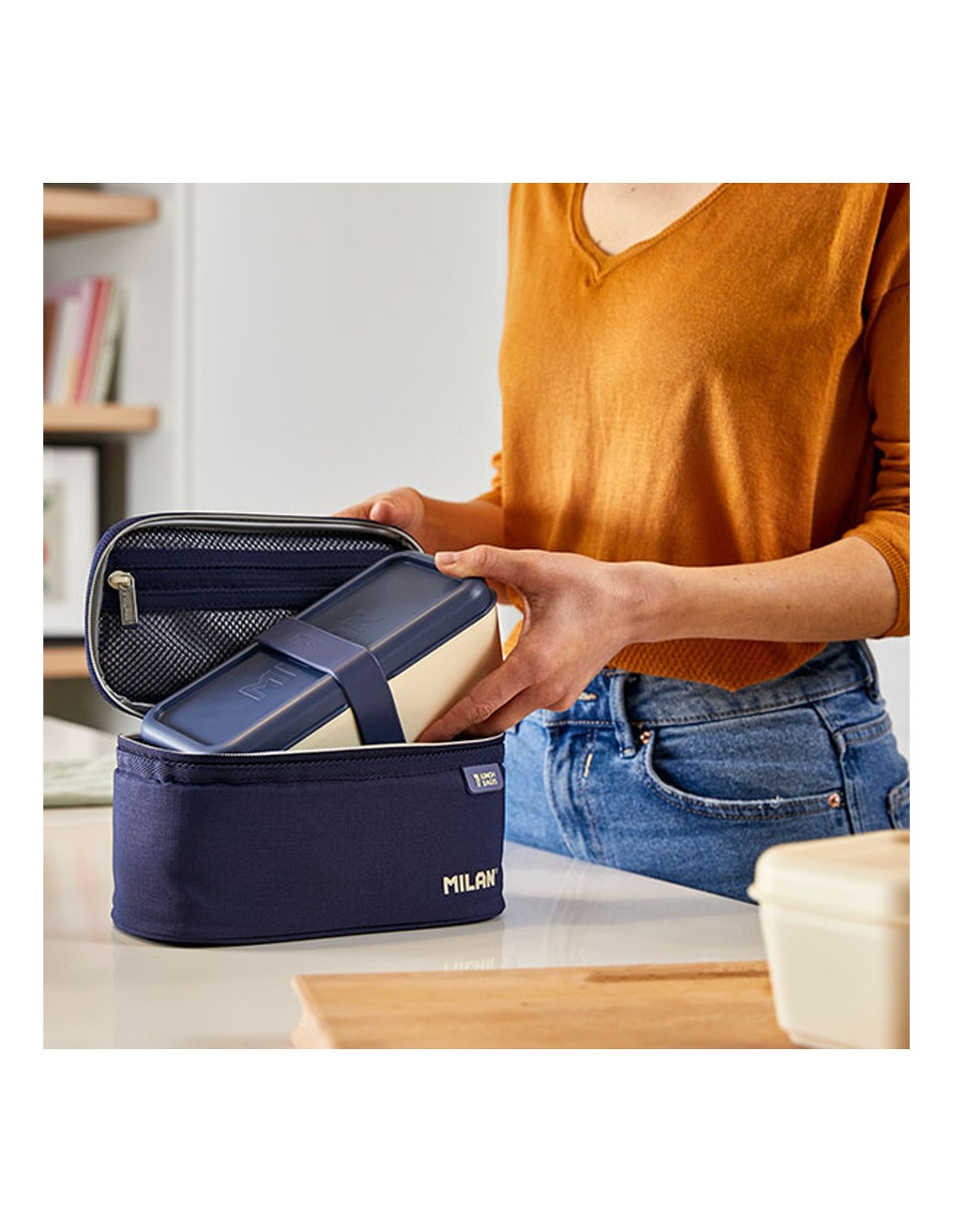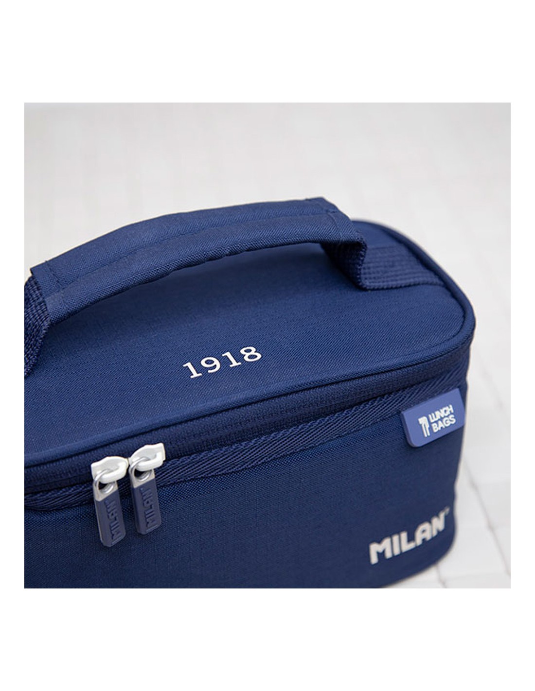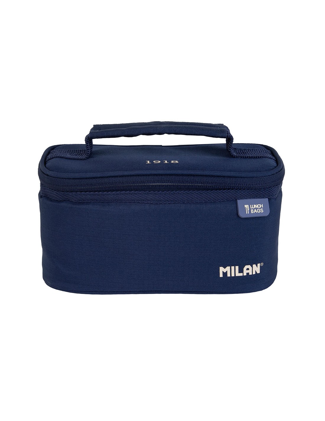 Bolsa isotérmica porta alimentos serie 1918 azul marino con 1 recipiente 1,5 l. contiene un recipiente rectangular con la tapa azul marino. interior aislante térmico (frío/calor). apertura total para una mejor accesibilidad y limpieza. práctico bolsillo interior con cremallera y asa superior. tejido exterior 'ripstop': ligero y resistente a la rotura y rasgaduras. utiliza una técnica especial que teje hilos gruesos de refuerzo a intervalos regulares en un patrón entrecruzado. composición tejido: exterior de poliéster y forro interior isotérmico (p.e.v.a.). medidas: 22 x 12,5 x 12 cm. capacidad: 1,5 litros