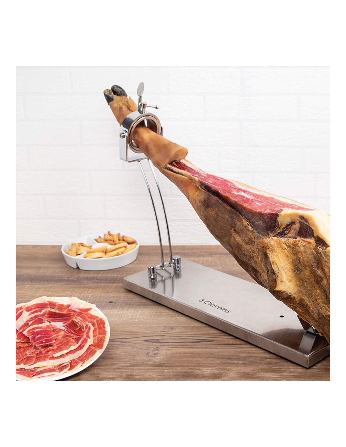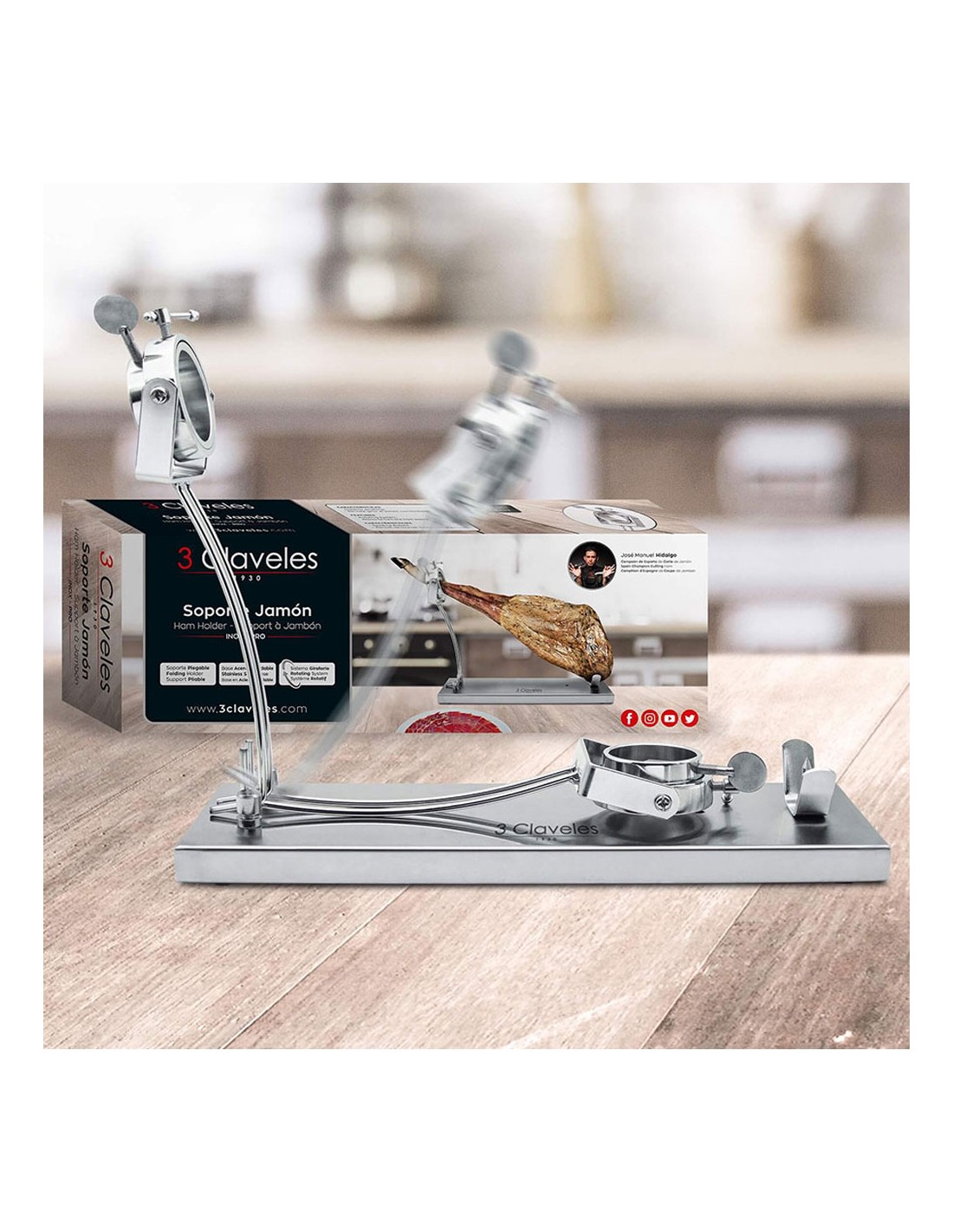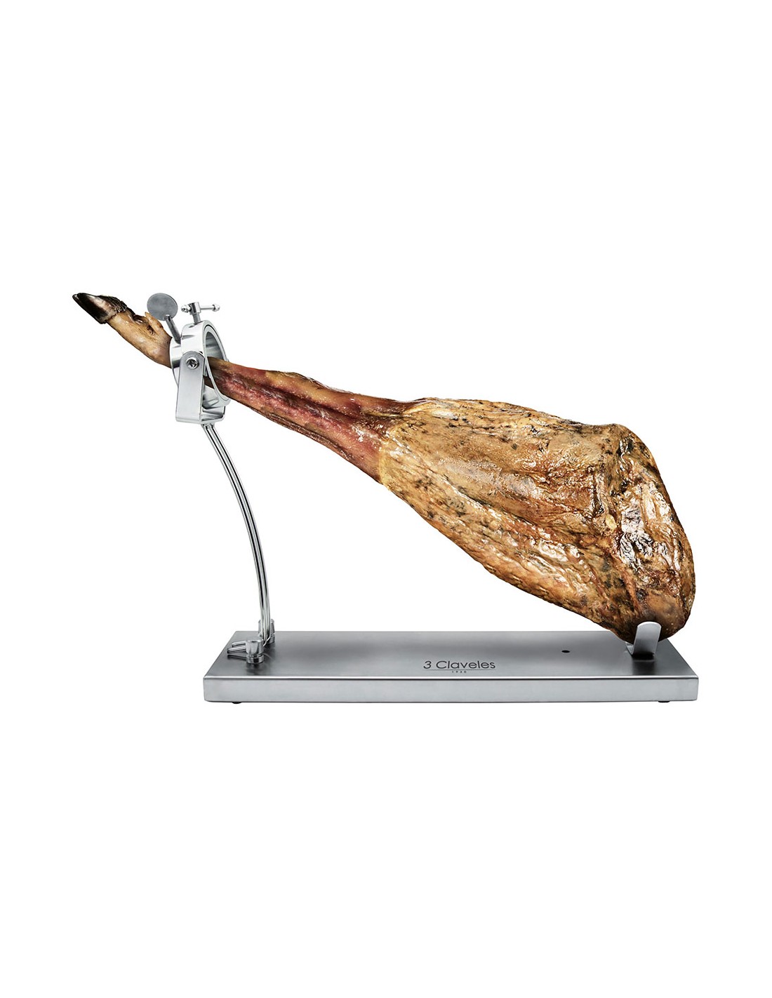 Jamonero con cabezal giratorio. fabricado en acero inoxidable de alta calidad, este jamonero será el centro de atención en tu mesa. con topes antideslizantes y facil sistema de rotación será muy fácil manipular el jamón. además. su plegado fácil servira para ocupar menos espacio en tu cocina a la hora de almacenarlo. acero inoxidable. dimensiones: 39 x 50 x 16,5 cm