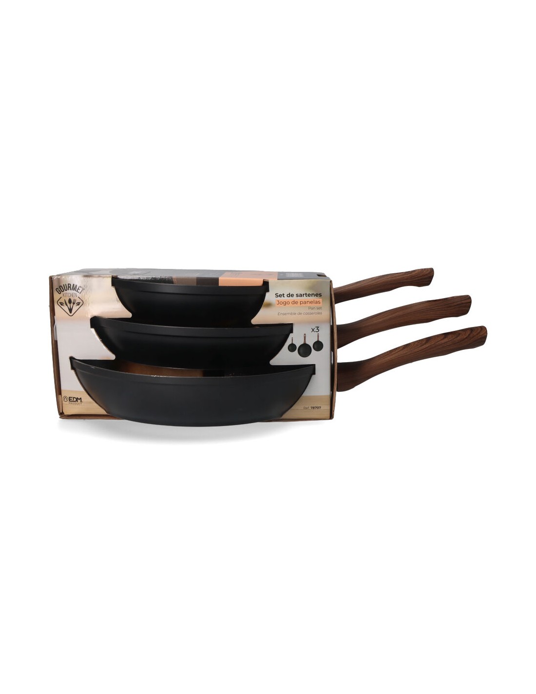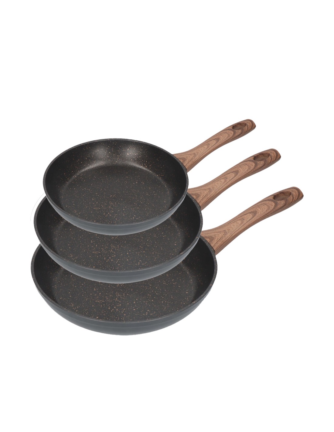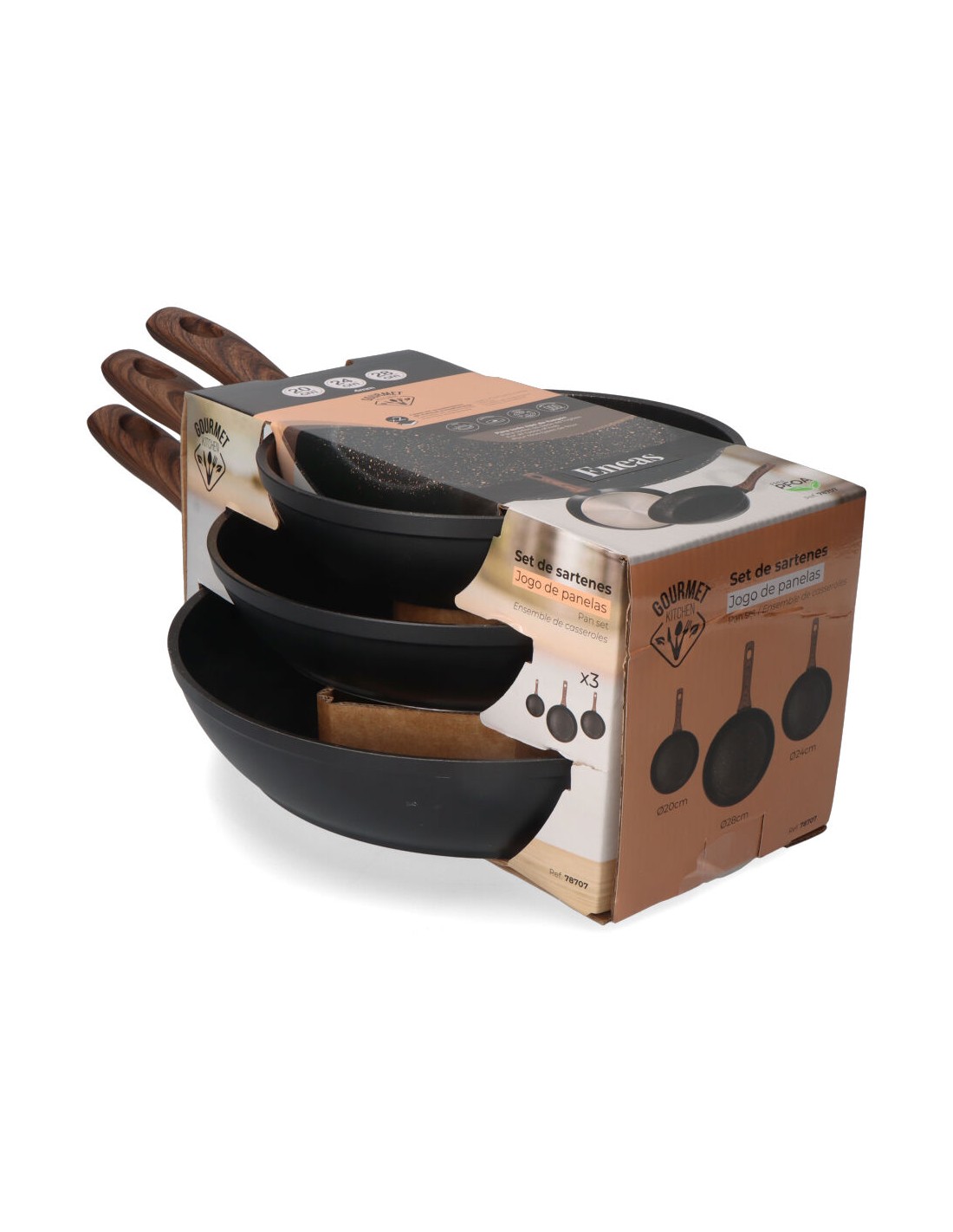 Set de 3 sartenes antiadherentes "serie eneas" gourmet kitchen: incluye sarten de ø20x4,5cm, ø24x4,7cm, ø28x5,5cm. apta para inducción, vitrocerámica, gas y placa eléctrica.