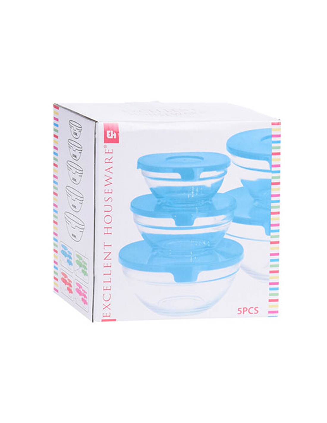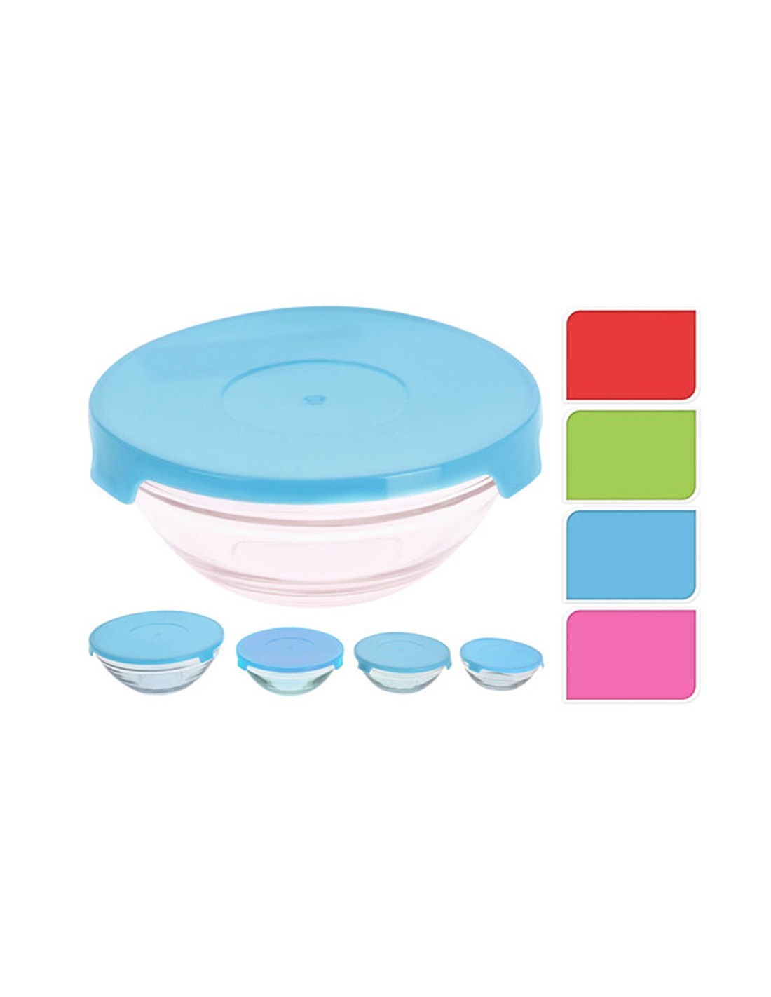 Set 5 fiambreras de vidrio tipo bol colores surtidos. apto para microondas y congelador, surtido 4 colores. capacidades: 125 ml, 200 ml, 300 ml, 450 ml, 800 ml