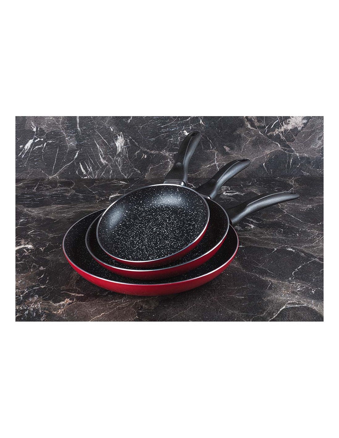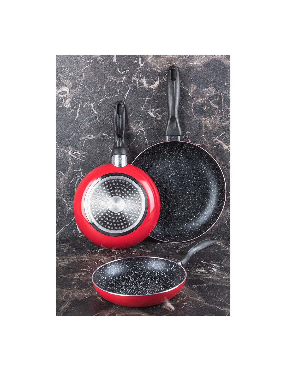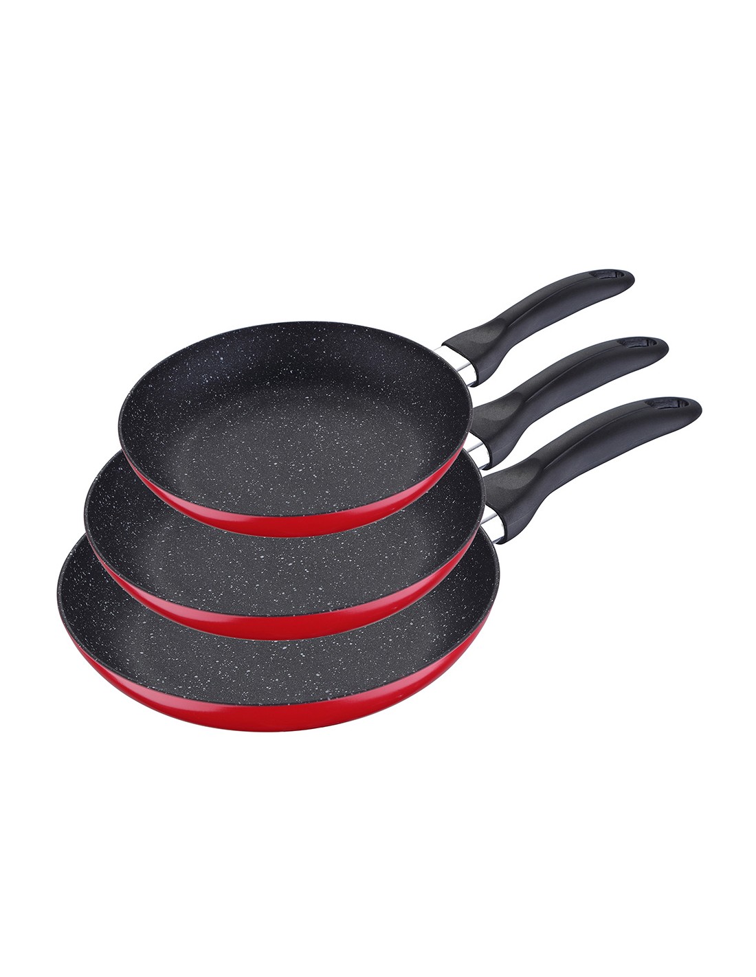 Set 3 sartenes (ø16+20+24cm) aluminio prensado sg-6855 san ignacio. fabricada en aluminio prensado, presenta un acabado exterior rojo y un revestimiento antiadherente marmolado. una combinación perfecta para tu cocina. su base de inducción permite distribuirle calor de una manera a uniforme ahorrando tiempo y energía además de evitar picos de calor. es compatible con todo tipo de fuegos. apto para su limpieza en lavavajillas. su mango de acabado negro es resistente al calor permitiendo un agarre más seguro. el set incluye tres sarténes de diferentes medidas: 16, 20 y 24cm.