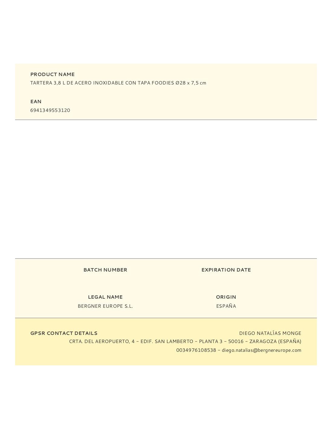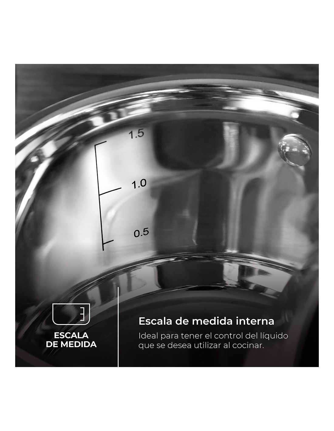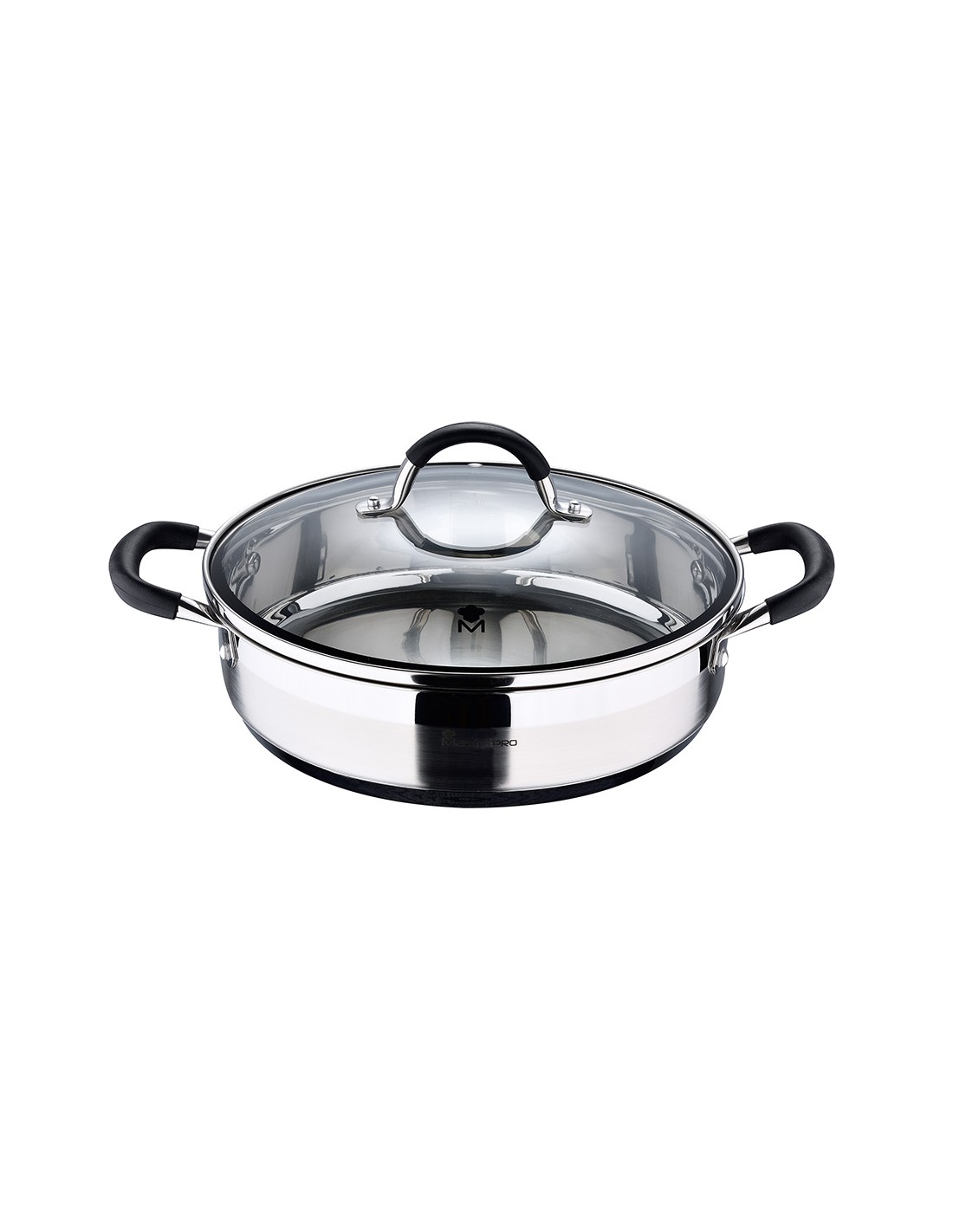 Tartera ø28x7,5cm 3,8l acero inoxidable con tapa foodies bgmp-1503-bk masterpro. esta cacerola ø28x7,5cm con capacidad de 3.8l. olla fabricada en acero inoxidable 18/10 que incluye una base ferromagnética de inducción completa. gracias a sus asas profesionales con inserciones de silicona, que se mantienen siempre frescas mientras se cocina, además ofrece un agarre perfecto y agradable sensación al tacto. cuenta con un fondo de inducción que la hace apta para todo tipo de cocinas.
