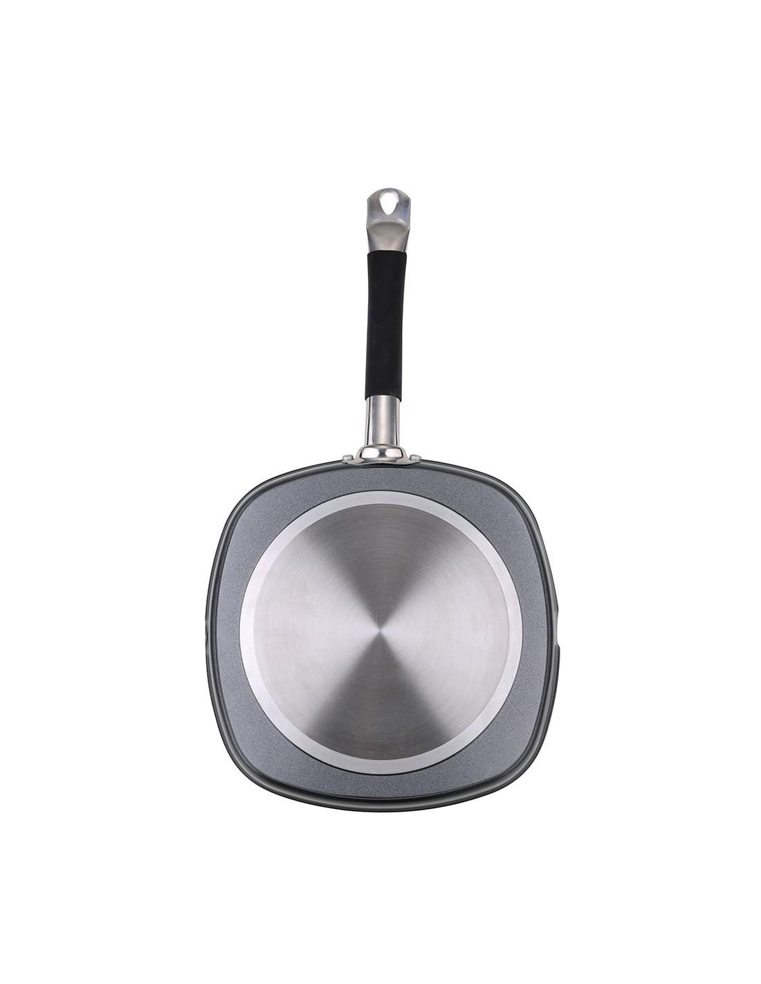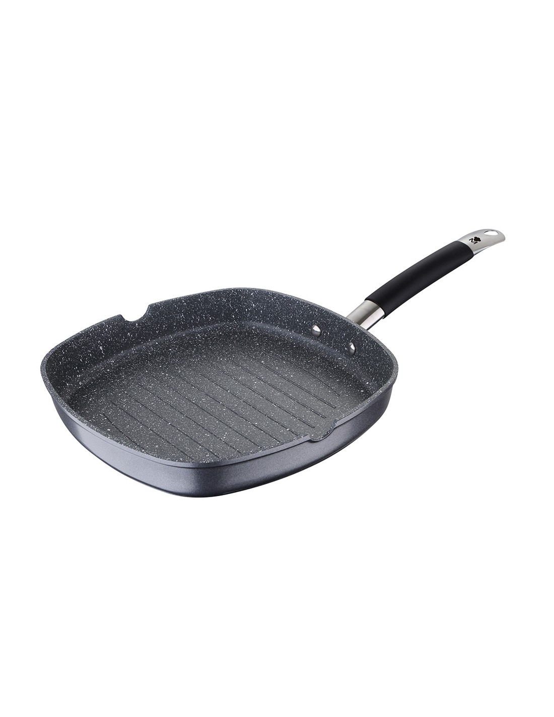 Asador ø28x28x4,5cm de aluminio forjado home edition bgmp-3287-bk masterpro. herramienta culinaria especialmente diseñada para facilitar la preparación de carnes, vegetales y otros alimentos en cantidades considerables. la composición de este asador es a base de aluminio forjado, un material conocido por sus propiedades de termo resistencia y durabilidad. dispersa el calor uniformemente a lo largo de toda su superficie para proveer un control de cocción ajustable sobre los alimentos. las paredes interiores del producto poseen un revestimiento antiadherente en mármol de superficie deslizante. dispone de un mango de diseño ergonómico que se amolda al agarre natural de las manos. esta pieza está recubierta de un protector térmico en silicona que resulta agradable al contacto con la piel. es fácil de lavar en el lavavajillas.
