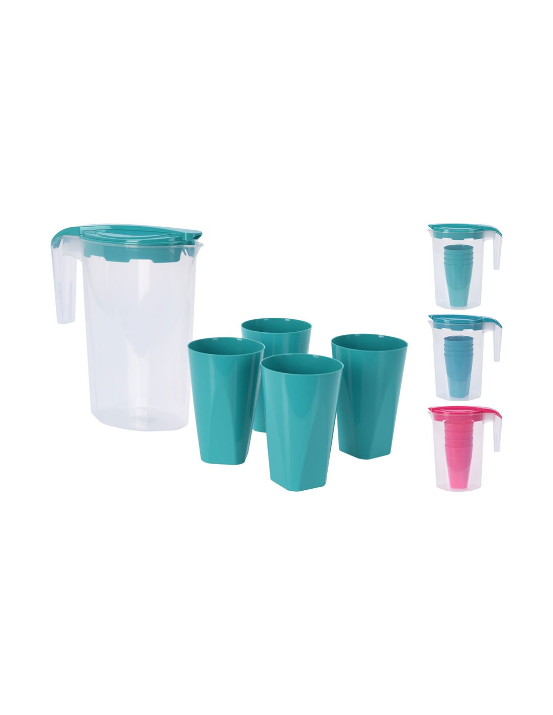 Jarra con 4 vasos de plástico, 1 x 1750 ml, 4 x 350 ml colores surtidos