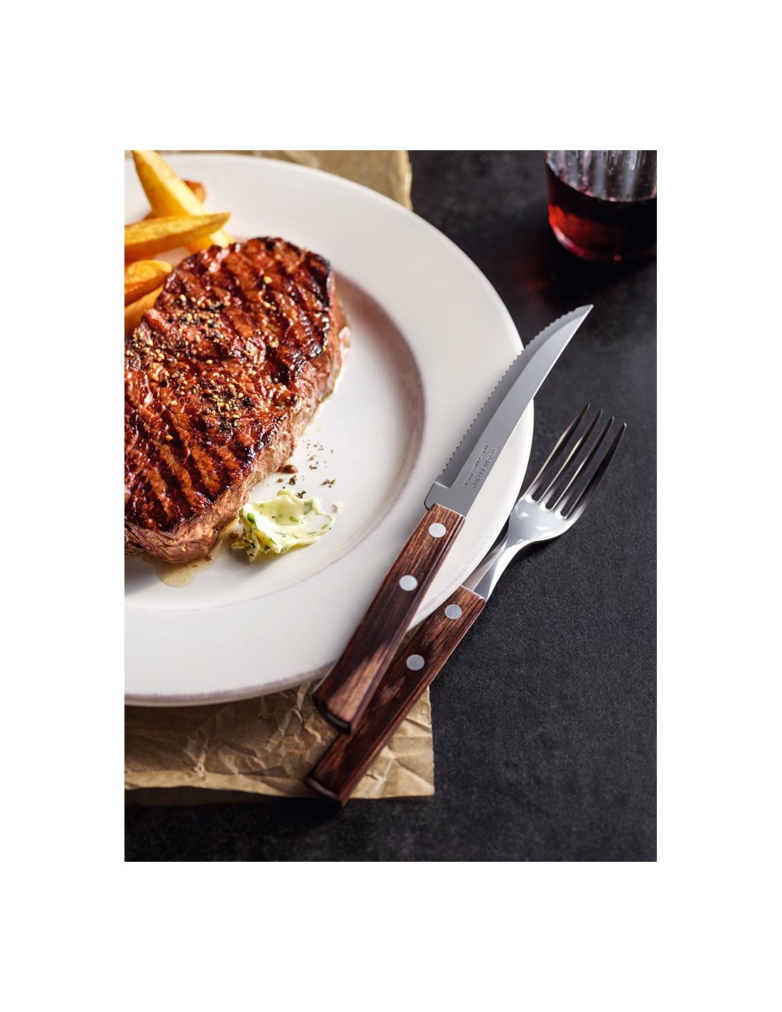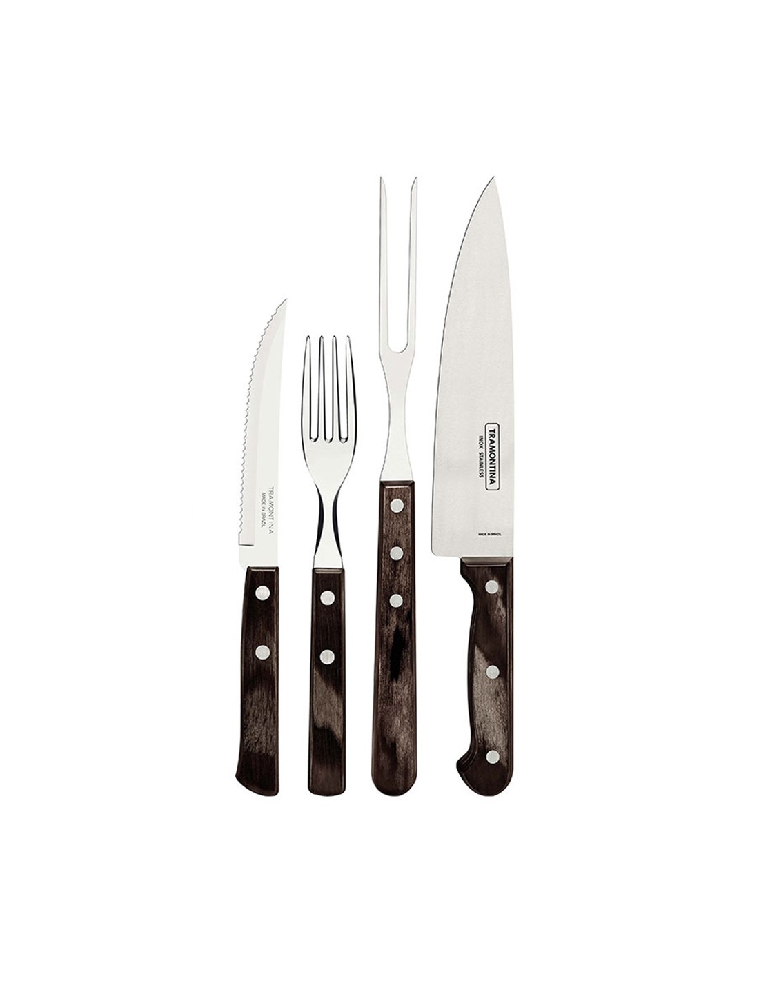 Juego para asado 14 piezas fsc polywood castaño de acero inoxidable con mangos castaños, de madera, polywood. incluye: 6 tenedores de mesa, 6 cuchillos de asado 5", 1 tenedor trinchante y 1 cuchillo de cocina