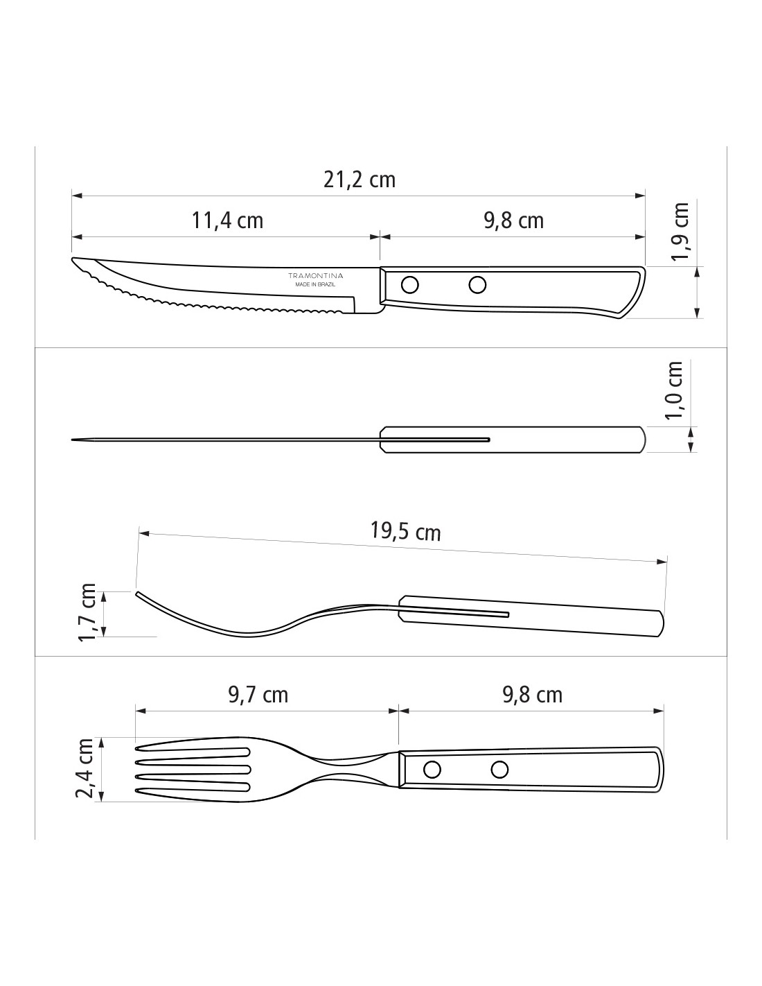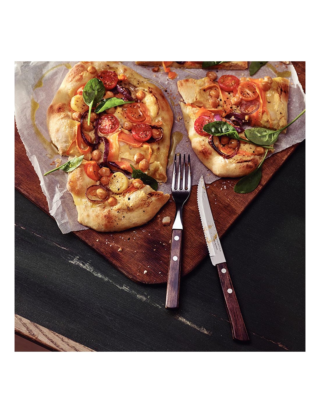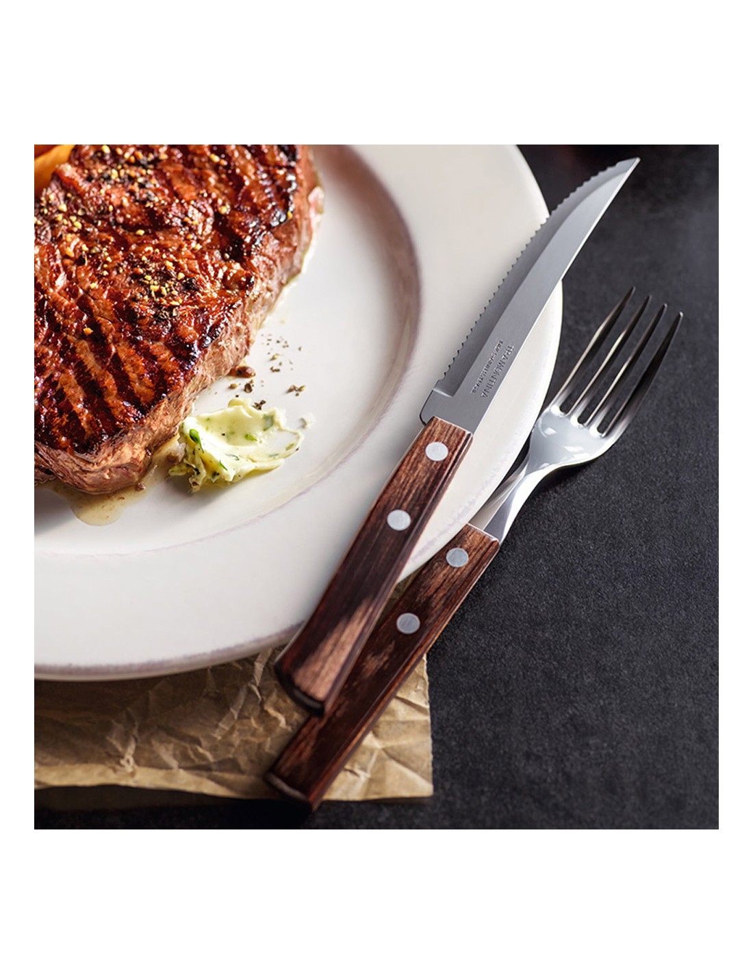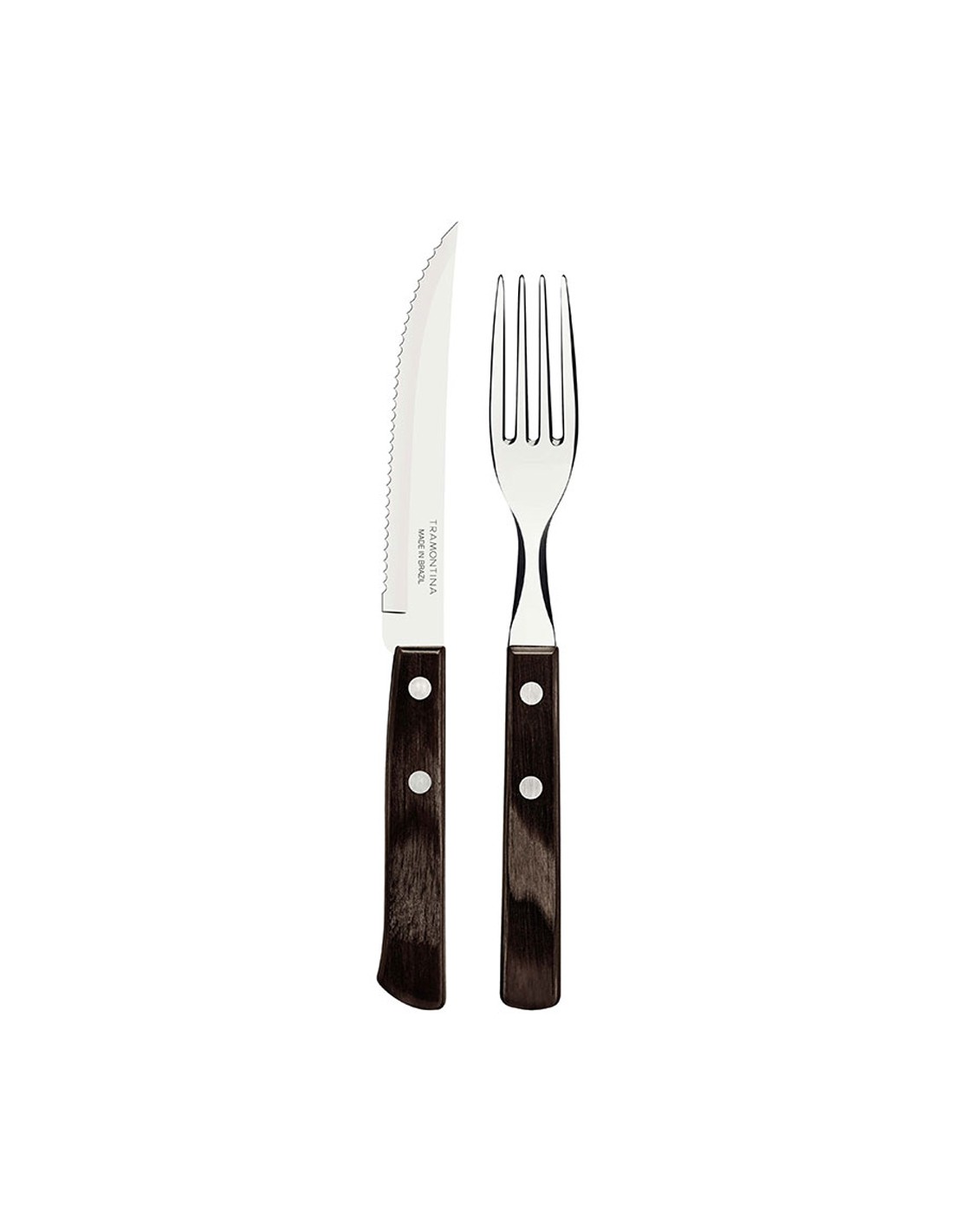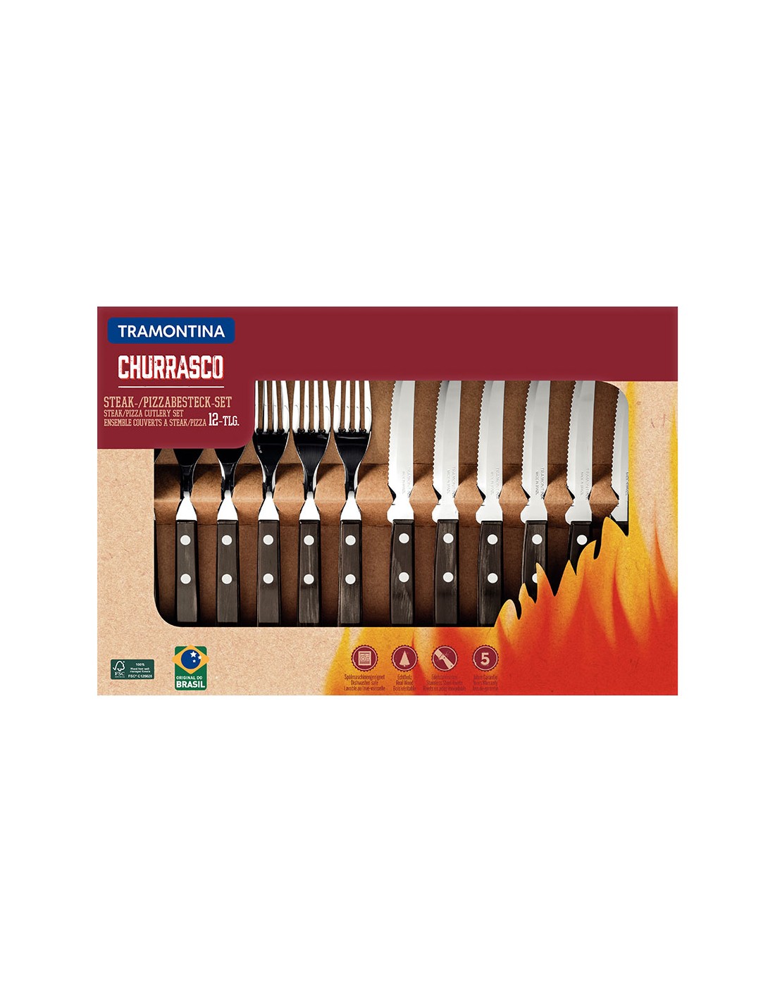 Juego para asado 12 piezas fsc polywood castaño. juego de cubiertos para asado de acero inoxidable con mangos castaños, de madera, polywood. incluye: 6 tenedores de mesa y 6 cuchillos de asado 5"