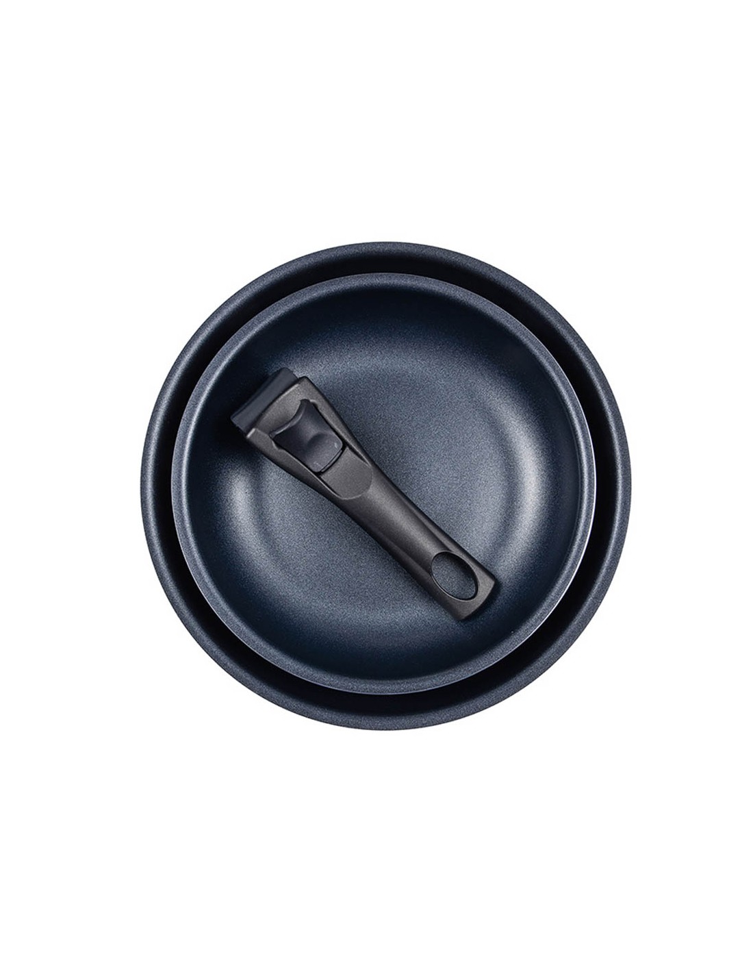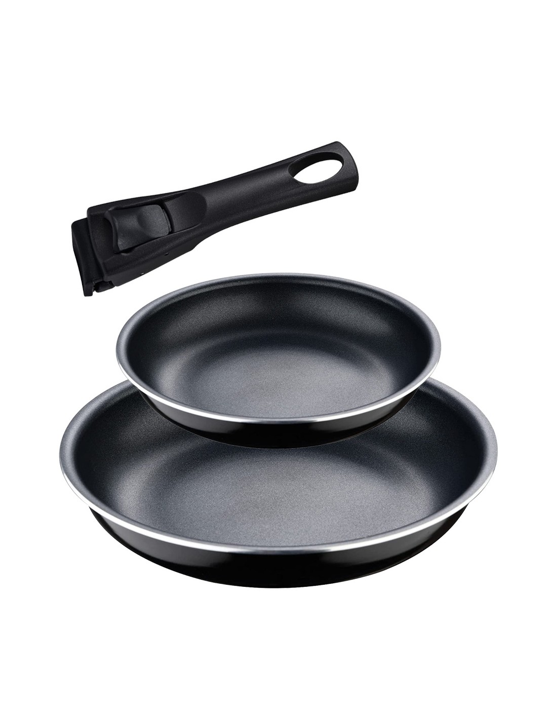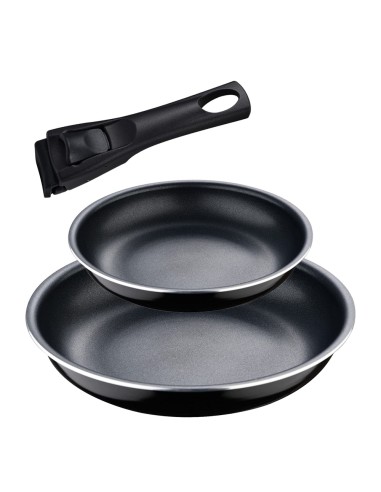 Set 2 sartenes (ø20+ø26cm) click & cook bergner. set de cocina compuesto por 2 sarténes antiadherentes de ø20 y ø26cm y un mango desmontable e intercambiable. estas sarténes son aptas para todo tipo de cocinas incluidas las de inducción. el mango se sujeta de forma segura con un solo clic y se quita de la misma manera. fabricadas en aluminio prensado con un acabado en color negro.