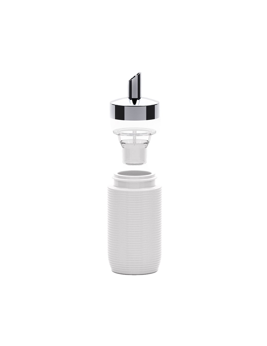 Azucarero de porcelana cromado con dosificador. máxima resistencia y durabilidad. fácil limpieza. diseño optimizado para ocupar el mínimo espacio en la mesa. capacidad de 250 ml
