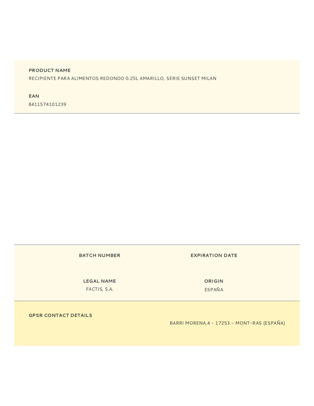 Recipiente para alimentos redondo color amarillo, serie sunset. tapa roscada que proporciona un cierre hermético. apto para calentar en microondas (máx. 70°c) con la tapa abierta para liberar el vapor. apto para congelador (hasta -20°c). apto para lavar en el lavavajillas (máx. 70°c). las tapas y los recipientes son fácilmente apilables entre si. acabado exterior mate, para facilitar la sujeción. interior con acabado brillante para favorecer su limpieza. material: plástico libre de bisfenol a (bpa free). medidas: 10 ø x7cm. capacidad: 0,25l